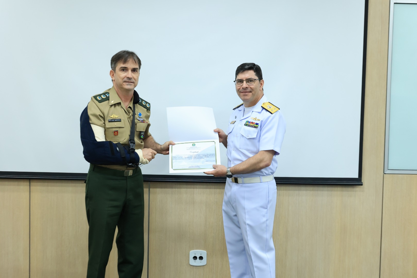 O Curso Superior de Inteligência Estratégica (CSIE 2024) recebeu, na manhã desta quarta-feira (13), o Diretor do Departamento de Promoção Comercial da Secretaria (DEPCOM) de Produtos de Defesa (SEPROD), Contra-Almirante João Batista. Ele falou sobre as características da indústria de defesa, atuação da SEPROD e inteligência comercial.