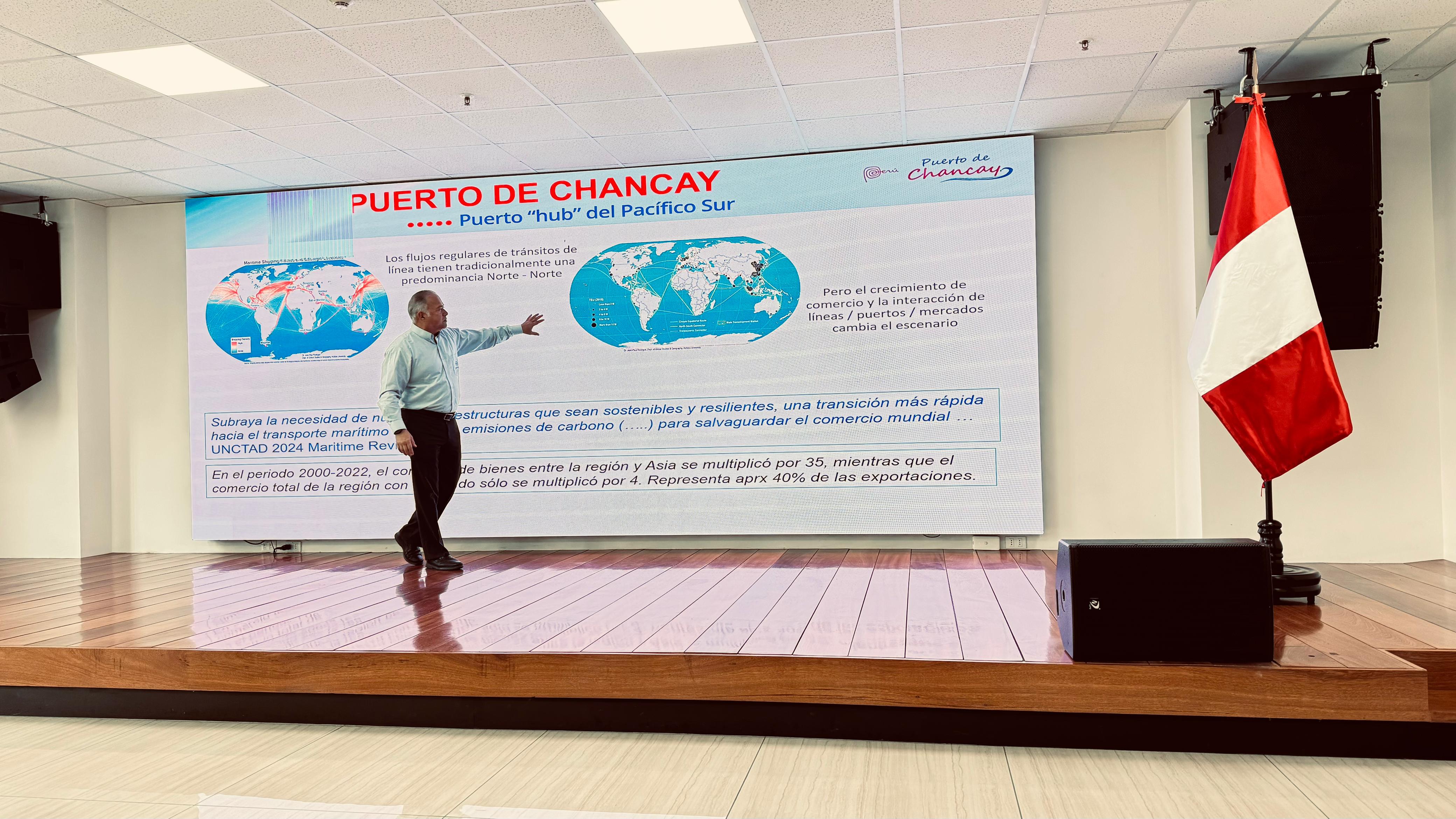 Em 15 de outubro, o grupo esteve no Porto de Chancay, onde foi recebido pelo Diretor-Geral Adjunto, Almirante Gonzalo Ríos Polastri. Após uma exposição sobre a estrutura e os projetos do porto — considerado um dos maiores empreendimentos logísticos do país —, os participantes percorreram as instalações de controle portuário, observando a magnitude e o potencial estratégico da obra.