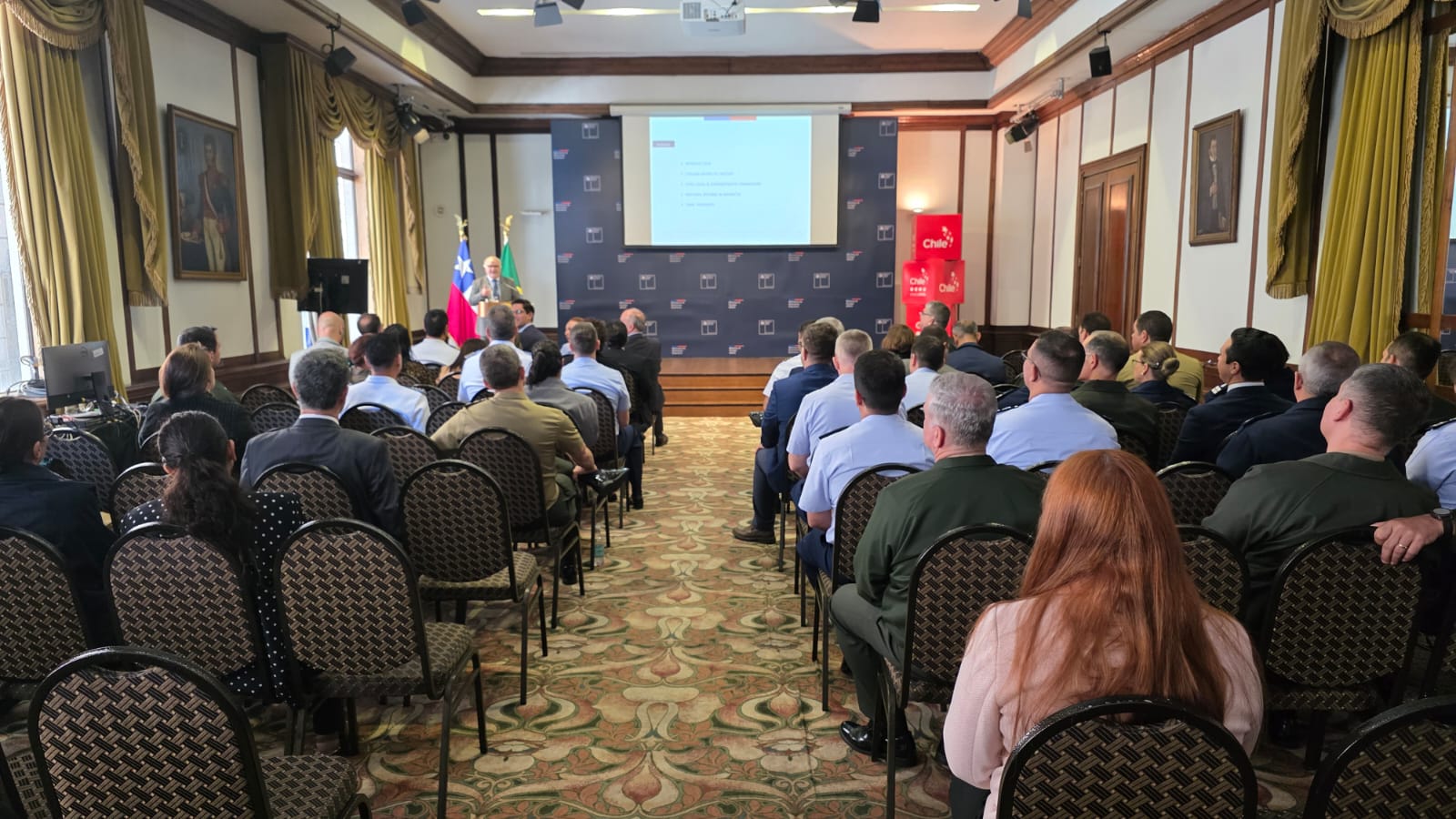 Durante o encontro, o Primeiro-Secretário Juan Enrique Loyer, Chefe da Divisão de Assuntos Antárticos, apresentou o tema “Governança Nacional Antártica do Chile”, e o Cel. Ret. Rafael Castilho, da Subsecretaria de Defesa, abordou “O Papel da Defesa na Gestão Antártica Nacional”.