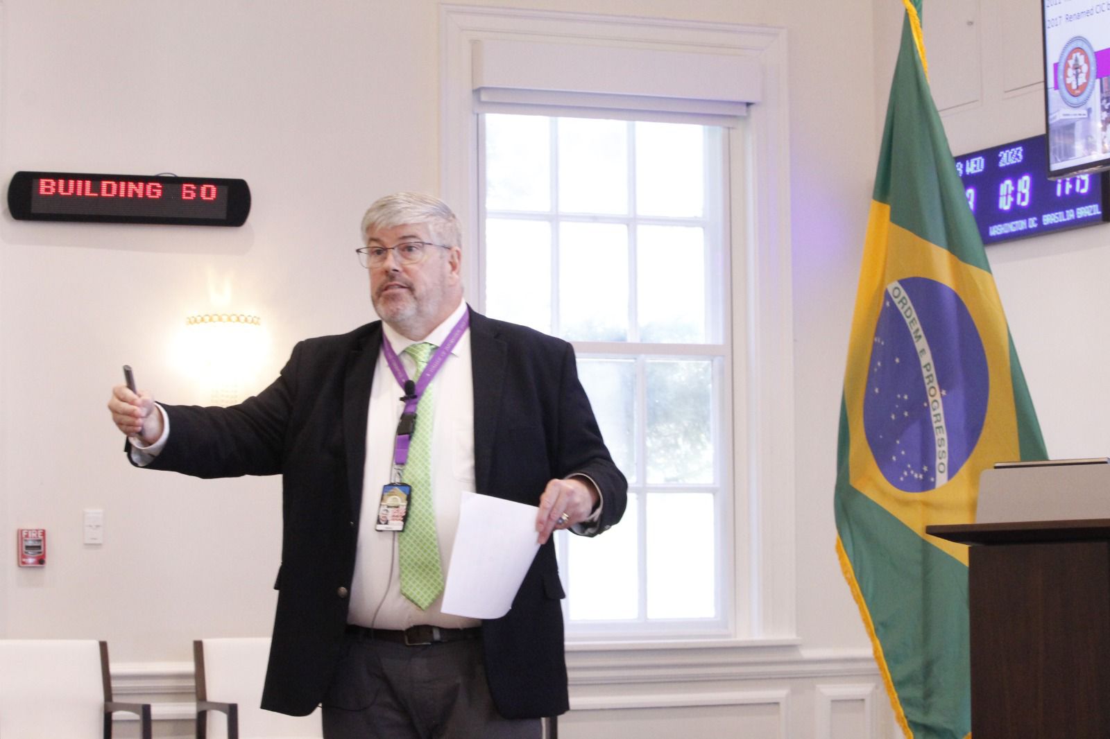 No terceiro dia do Estudo Interdisciplinar de Campo (EIC) em Washington, em 18 de outubro, os alunos do Curso de Altos Estudos em Defesa (CAED) assistiram a uma palestra no Colégio Interamericano de Defesa da Eisenhower School of National Security and Resource Strategy, ministrada pelo Col Christopher A. Michele sobre “Apoio à decisão de aquisição de defesa dos EUA “ e “Inovação e Empreendedorismo” e pelo Dr. Joseph H. Schafer, Professor da National Defense University do College of Information and Cyberspace sobre “Inteligência Artificial e Segurança Nacional”. Na parte da tarde, foram realizadas visitas ao Capitólio, centro legislativo dos EUA.
