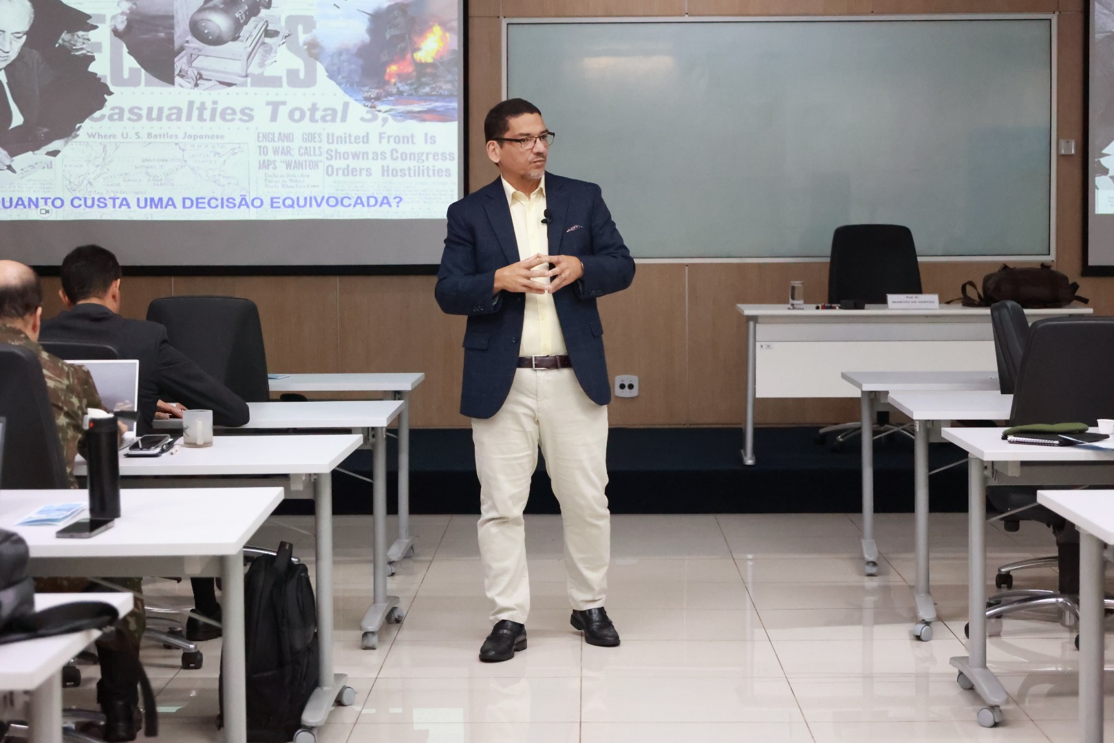O colóquio contou com a participação do Prof. Dr. Marcos dos Santos, da Escola Naval e da Universidade Federal Fluminense (UFF), que gentilmente atendeu ao convite para apoiar o CLED nesse importante evento.