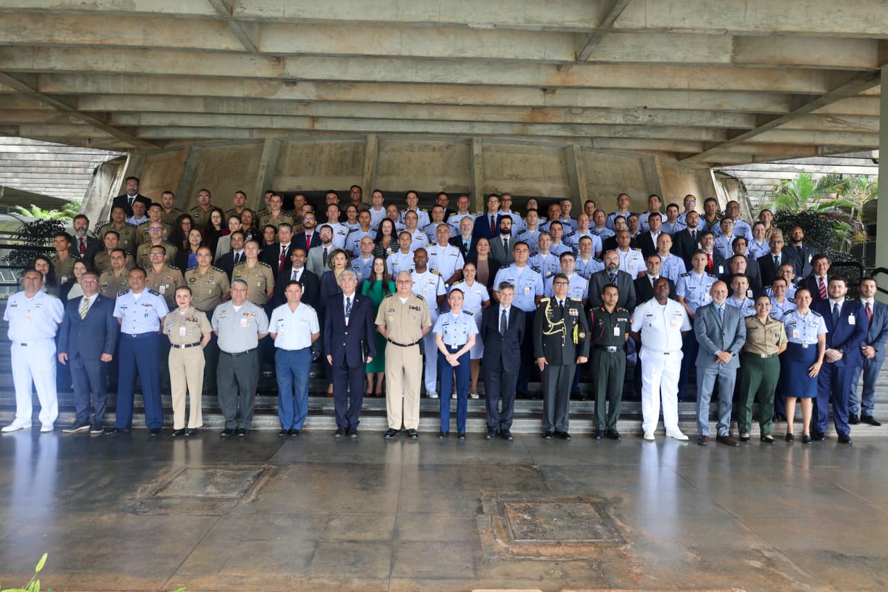 Estiveram presentes a Comandante da ESD, Major-Brigadeiro Médica Carla Lyrio Martins; o Embaixador George Torquato Firmeza, diplomata de ligação do Ministério das Relações Exteriores junto à ESD; o General Helder Fernán Giraldo Bonilla, antigo Comandante-Geral das Forças Militares da Colômbia; e o Contra-Almirante Jeferson Denis Cruz de Medeiros, Coordenador-Geral Acadêmico, além de adidos militares estrangeiros e representantes do Corpo Permanente e Discente.