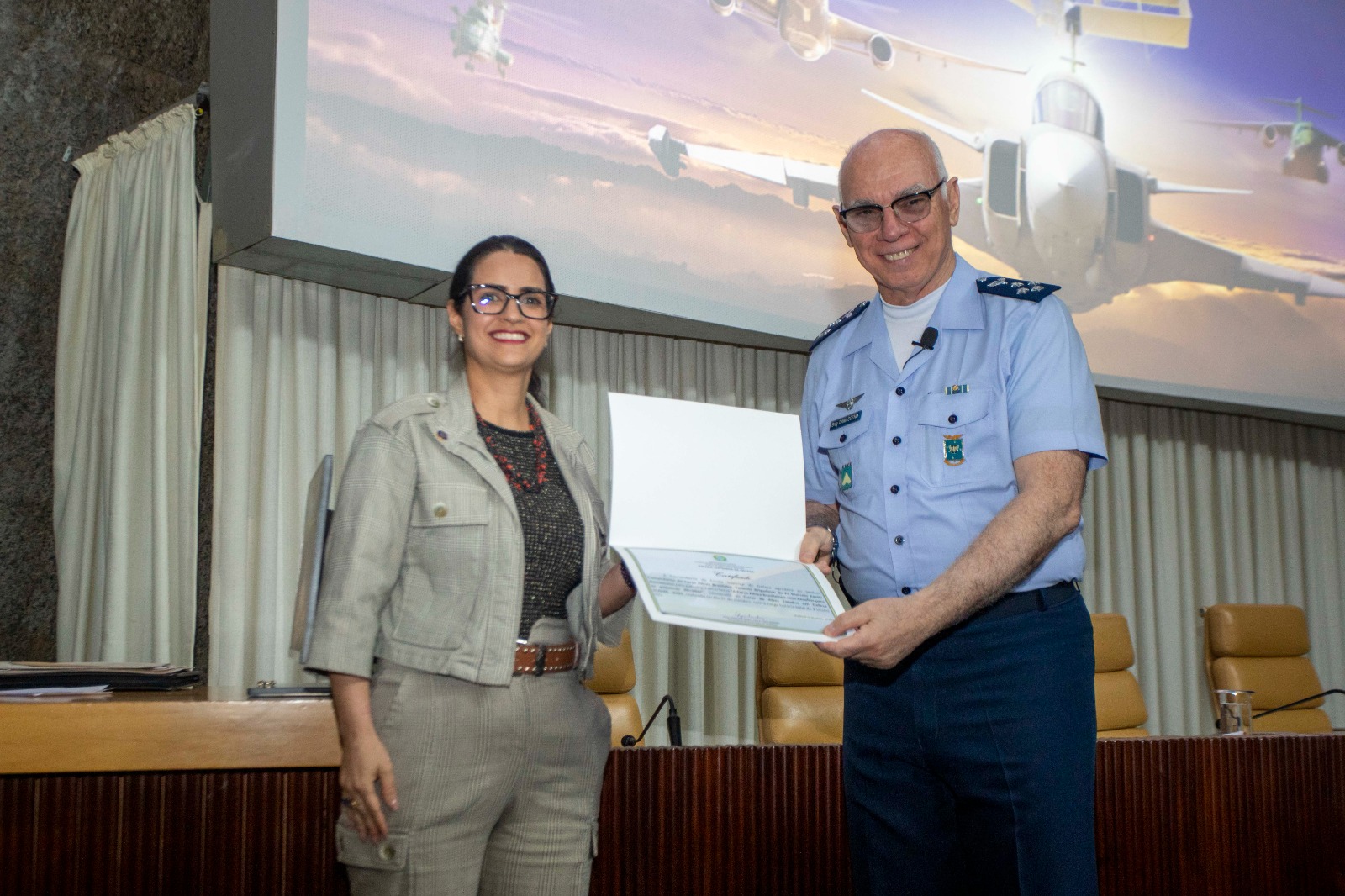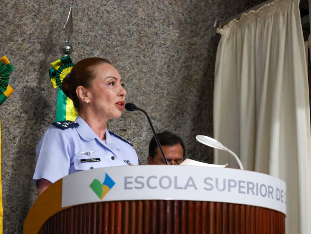 A Comandante e Reitora da ESD, Major-Brigadeiro Médica Carla Lyrio Martins, agradeceu a presença do Comandante da Aeronáutica e ressaltou a relevância da palestra no contexto do ensino de altos estudos de defesa. “Receber o Comandante da Aeronáutica neste espaço representa uma oportunidade única e reforça a importância dos nossos cursos, que reúnem mais de 40 instituições civis e militares, com ampla presença de representantes do Governo Federal. Poder ouvir a visão do Comandante sobre o presente e o futuro da Força Aérea Brasileira foi extremamente enriquecedor para todos”, pontuou.