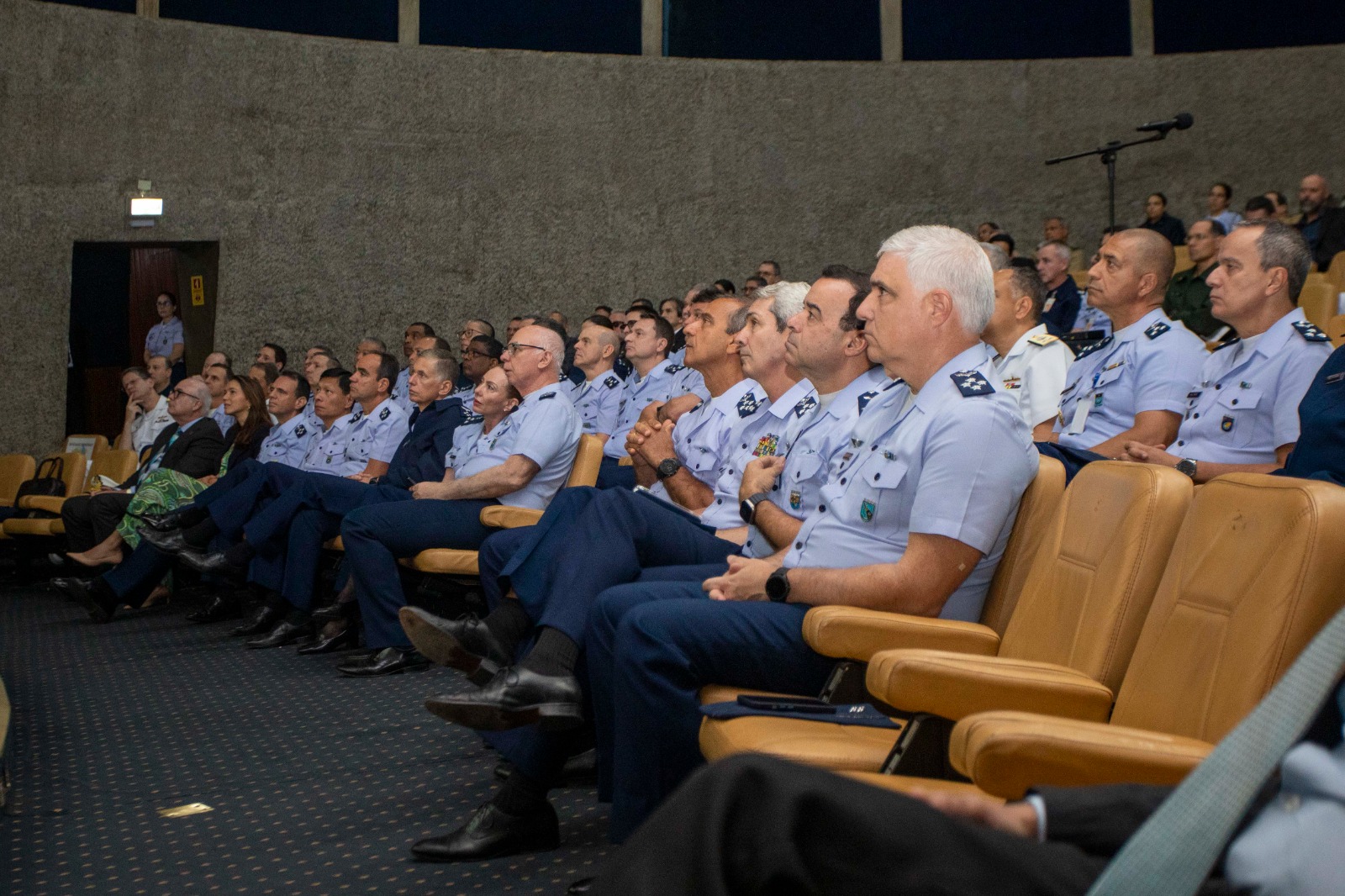 Após a apresentação, houve espaço para perguntas e debates, permitindo que os participantes interagissem com o Comandante e ampliassem a compreensão sobre os desafios e oportunidades da aviação militar brasileira.