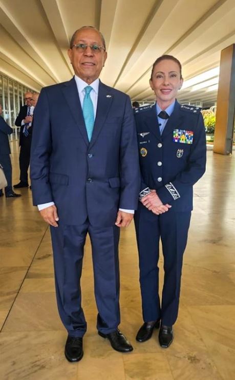 - Embaixador Mauro Vieira, Ministro das Relações Exteriores, com a Major-Brigadeiro Carla, Comandante da ESD