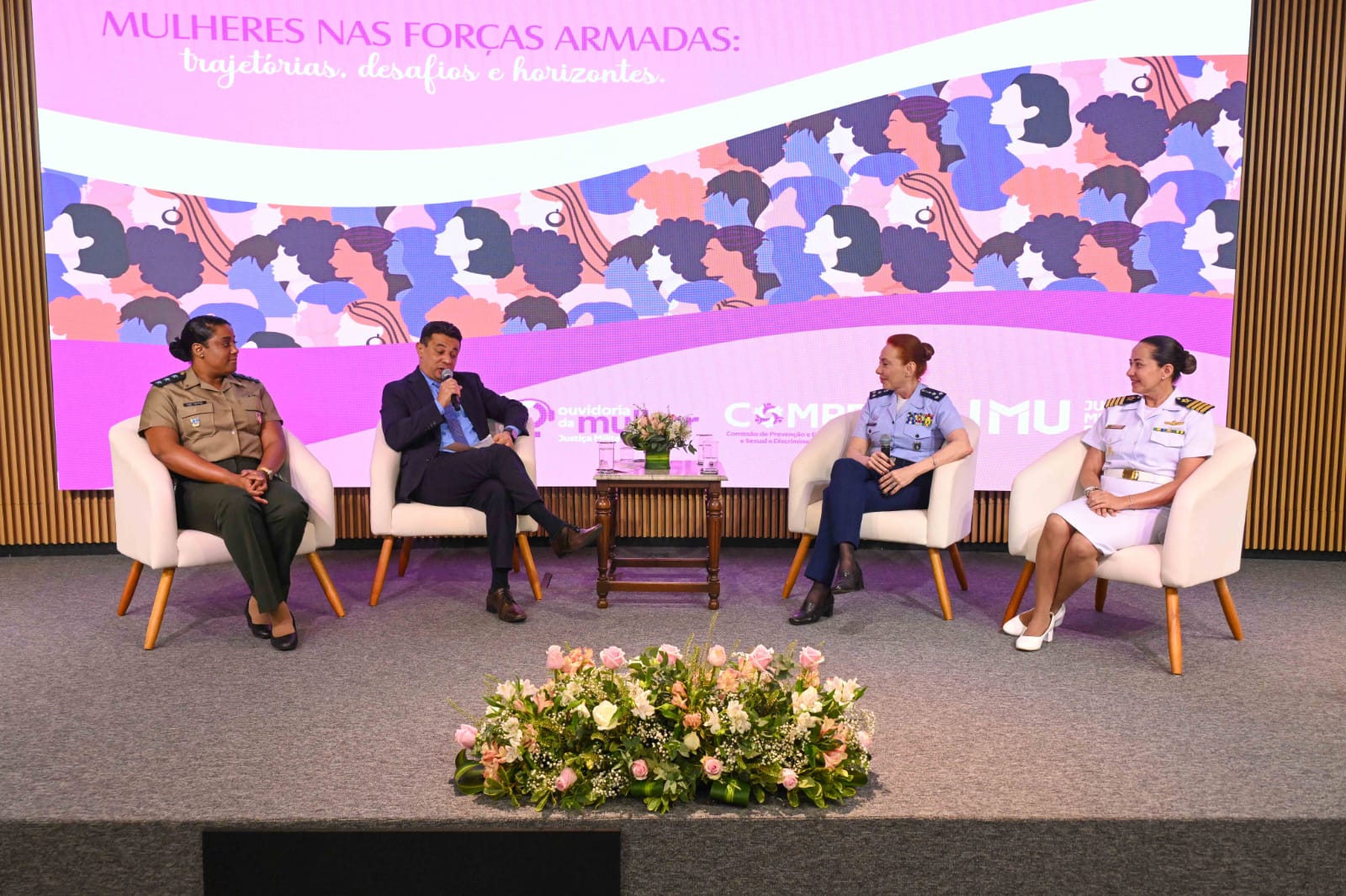 A Major-Brigadeiro Carla integrou o painel “Mulheres nas Forças Armadas: perspectivas futuras”, juntamente com a Capitão de Mar e Guerra Maria Eliâne Alencar Rocha Borges, representante da Marinha do Brasil, e da Tenente Luana Pereira Carneiro, representante do Exército Brasileiro.