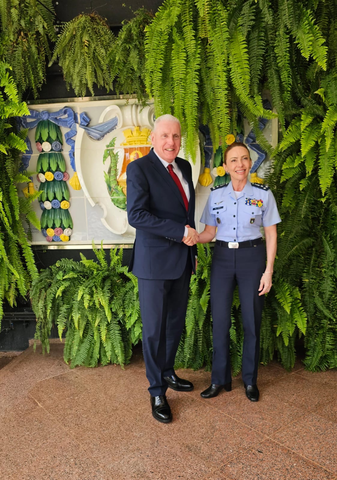 A Comandante e Reitora da Escola Superior de Defesa (ESD), Major-Brigadeiro Médica Carla Lyrio Martins, visitou a Embaixadora do Reino Unido Stephanie Al-Qaq, nessa quinta-feira (05/12), em Brasília (DF).