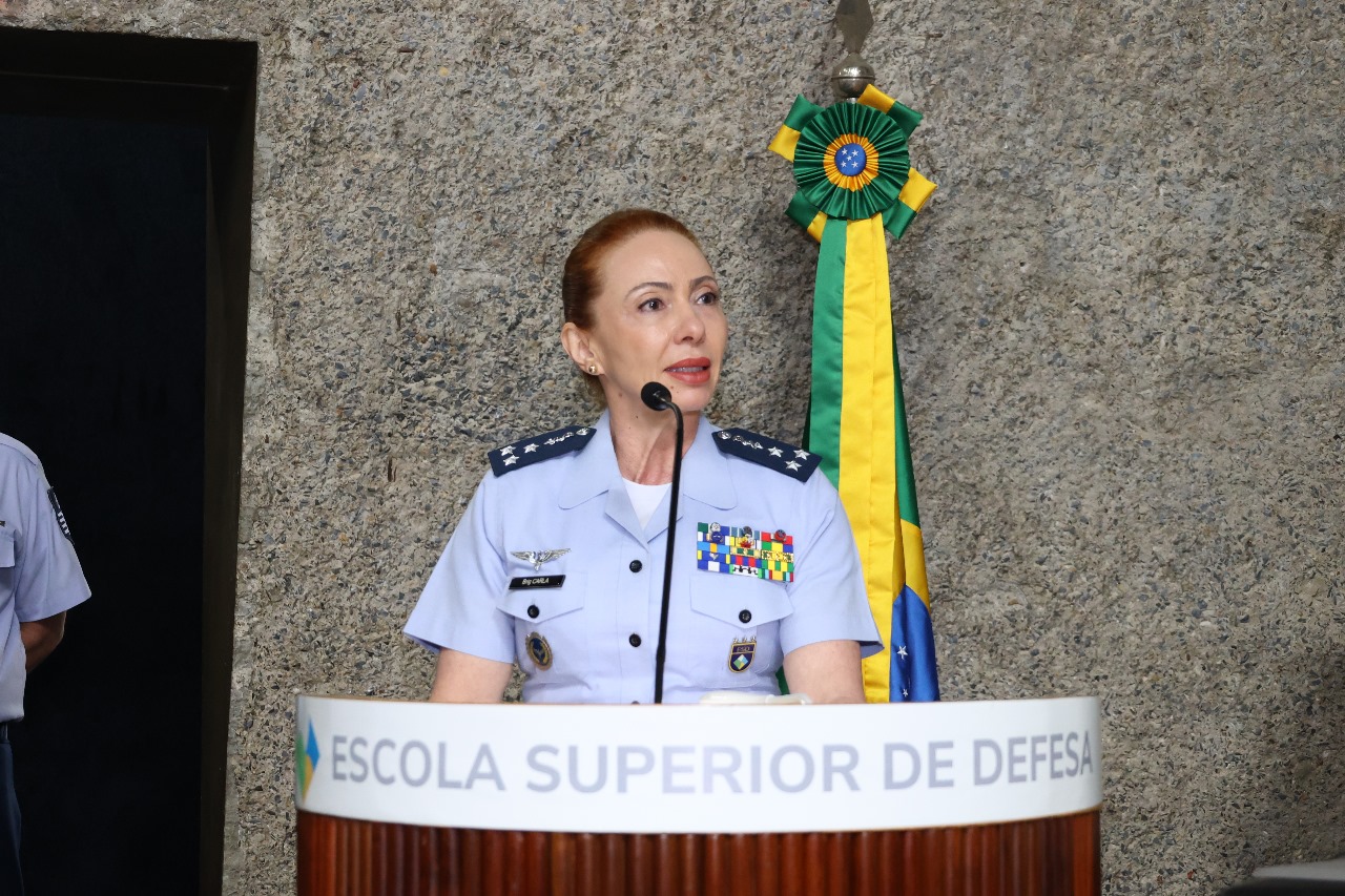O Almirante de Esquadra Olsen foi recebido pela Comandante e Reitora da ESD, Major-Brigadeiro Médica Carla Lyrio Martins. Em suas palavras de boas-vindas, ela destacou a importância e o elevado nível técnico e intelectual do evento. "A distinta presença do senhor enriquece sobremaneira o ambiente acadêmico, enobrece o diálogo e atualiza o panorama do trinômio segurança, desenvolvimento e defesa, capacitando pessoas, a fim de construir uma mentalidade de defesa junto à sociedade brasileira", disse.