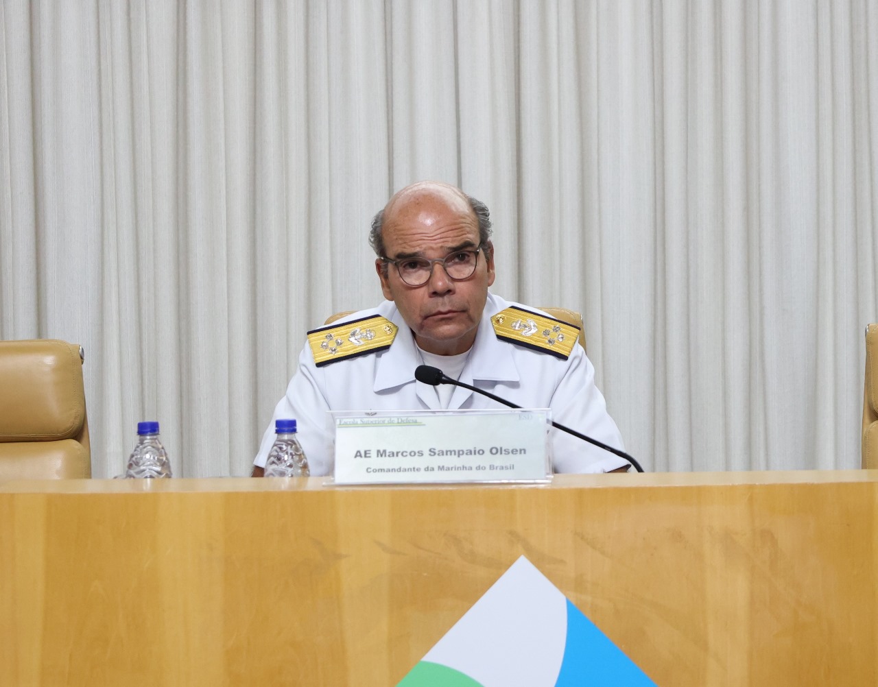 O Comandante da Marinha do Brasil, Almirante de Esquadra Marcos Sampaio Olsen, proferiu a palestra "Desafios da Marinha do Brasil para as Próximas Décadas", no auditório Professor Gustavo Heck, da Escola Superior de Defesa (ESD), nesta terça-feira (27/08/2024). A atividade fez parte do 3º Ciclo Anual de Palestras (CAP) e contou com a presença de aproximadamente 300 militares e civis provenientes do Curso de Altos Estudos em Defesa (CAED) e do Curso Superior de Defesa (CSD), que realiza uma série de seminários na ESD ao longo desta semana, além de convidados.