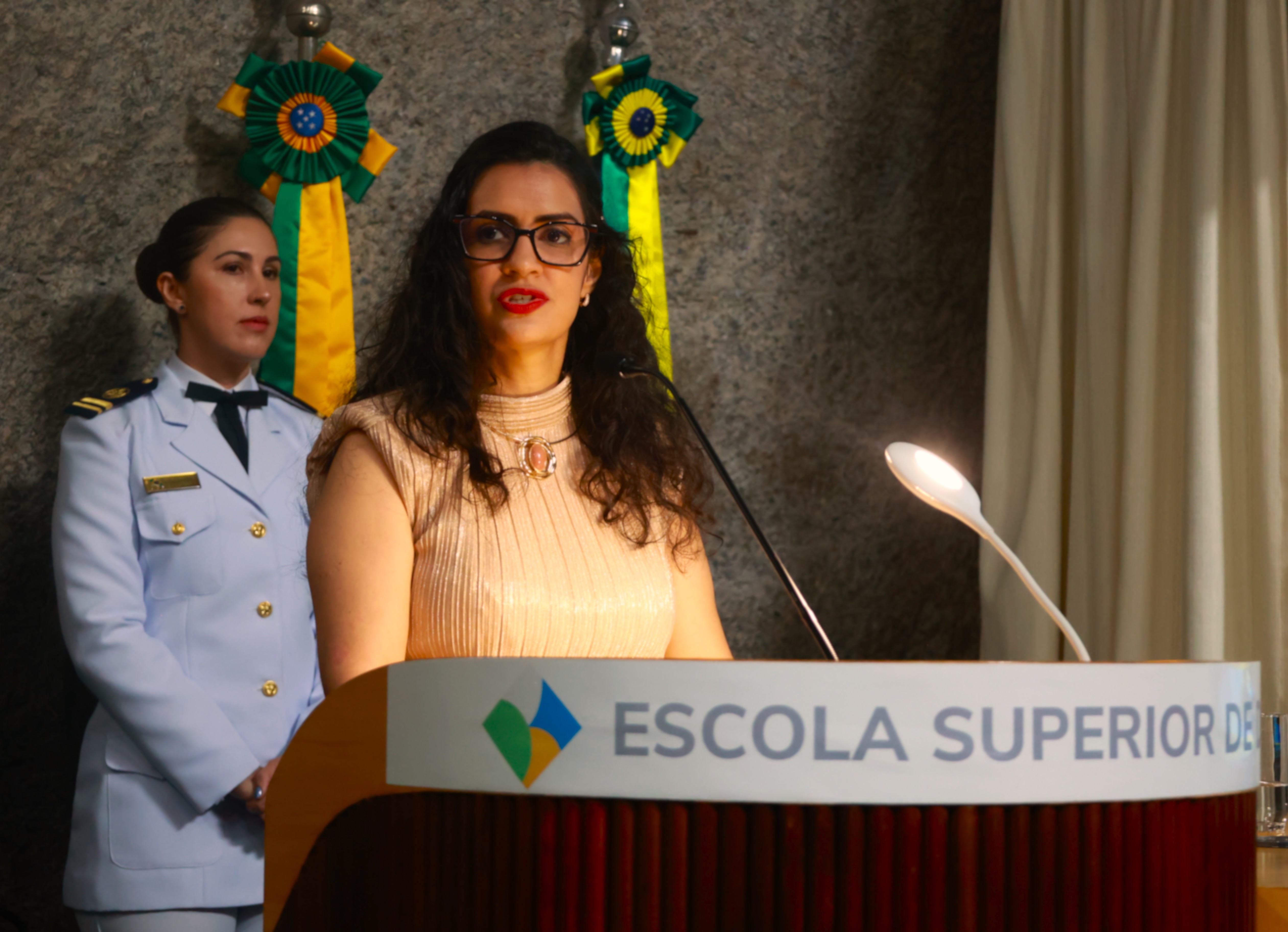 A oradora da turma, Elise Sueli Pereira Gonçalves, do Gabinete de Segurança Institucional da Presidência da República, destacou que o CAED vai além do conteúdo acadêmico e inclui enxergar a realidade brasileira, o entorno estratégico e o cenário contemporâneo de Segurança, Desenvolvimento e Defesa.