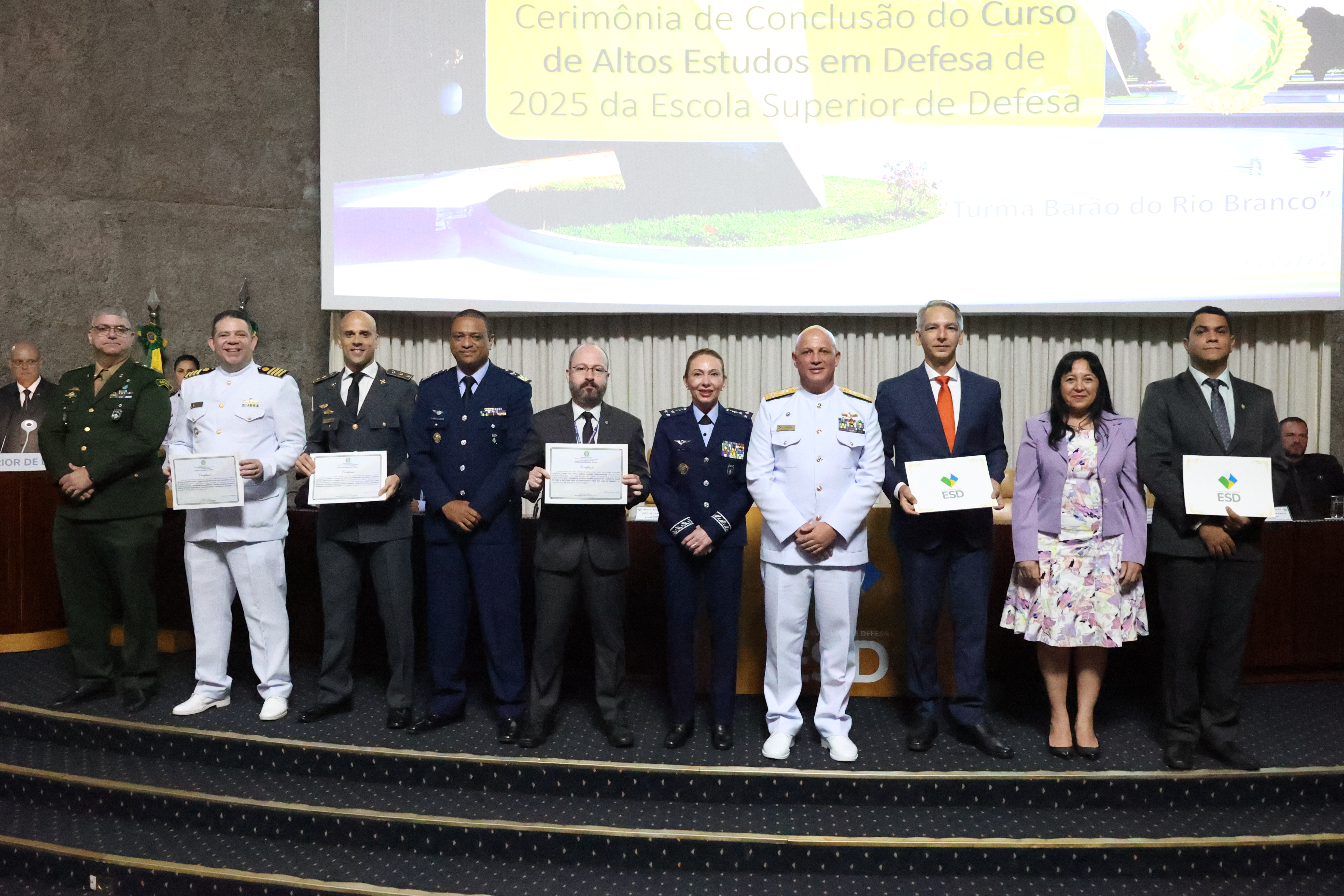 A turma de 2025 recebeu o nome “Barão do Rio Branco”, em homenagem aos 180 anos de nascimento do patrono da diplomacia brasileira. Ao todo, 99 alunos concluíram o curso, representando 24 instituições civis e militares. Entre eles, estavam 56 militares das Forças Armadas, integrantes das forças de segurança estaduais, servidores de diversos órgãos do governo federal e dois oficiais estrangeiros — das Marinhas da França e da Índia. O grupo contou ainda com 15 alunas, sendo 10 civis.