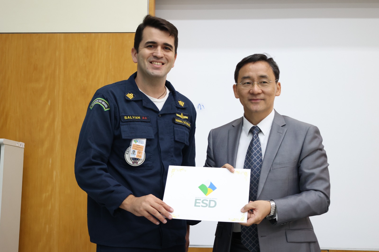 Nesta quarta-feira (18/09), o Curso de Diplomacia e Defesa (CDIPLOD) recebeu o Ministro da Embaixada da República Popular da China no Brasil, Jin Hongjun. O tema da palestra foi “Relacionamento Internacional Brasileiro”.