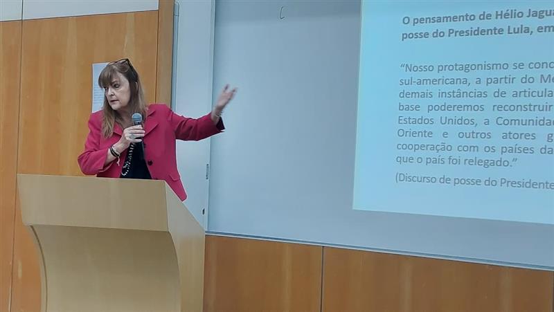 Com o tema “Cooperação e integração na América do Sul”, a Embaixadora compartilhou reflexões sobre os desafios e oportunidades da integração regional, destacando o papel do Brasil na construção de uma agenda de diálogo, estabilidade e desenvolvimento sustentável no continente.
