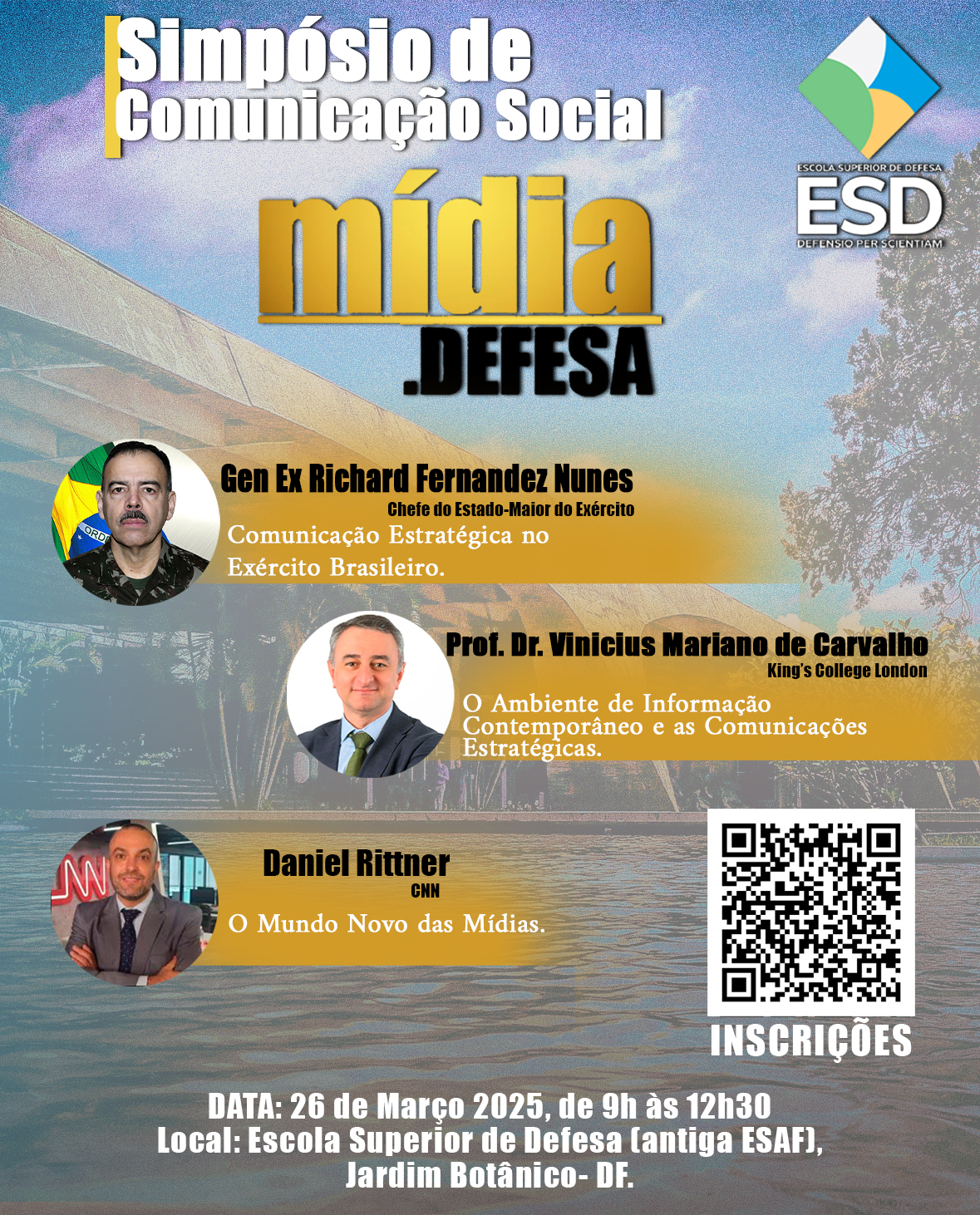 O Simpósio Midia.Defesa representa uma oportunidade única para o intercâmbio de experiências entre os setores acadêmico, militar e jornalístico, promovendo uma análise aprofundada sobre o papel da comunicação social na construção da narrativa de Defesa Nacional.