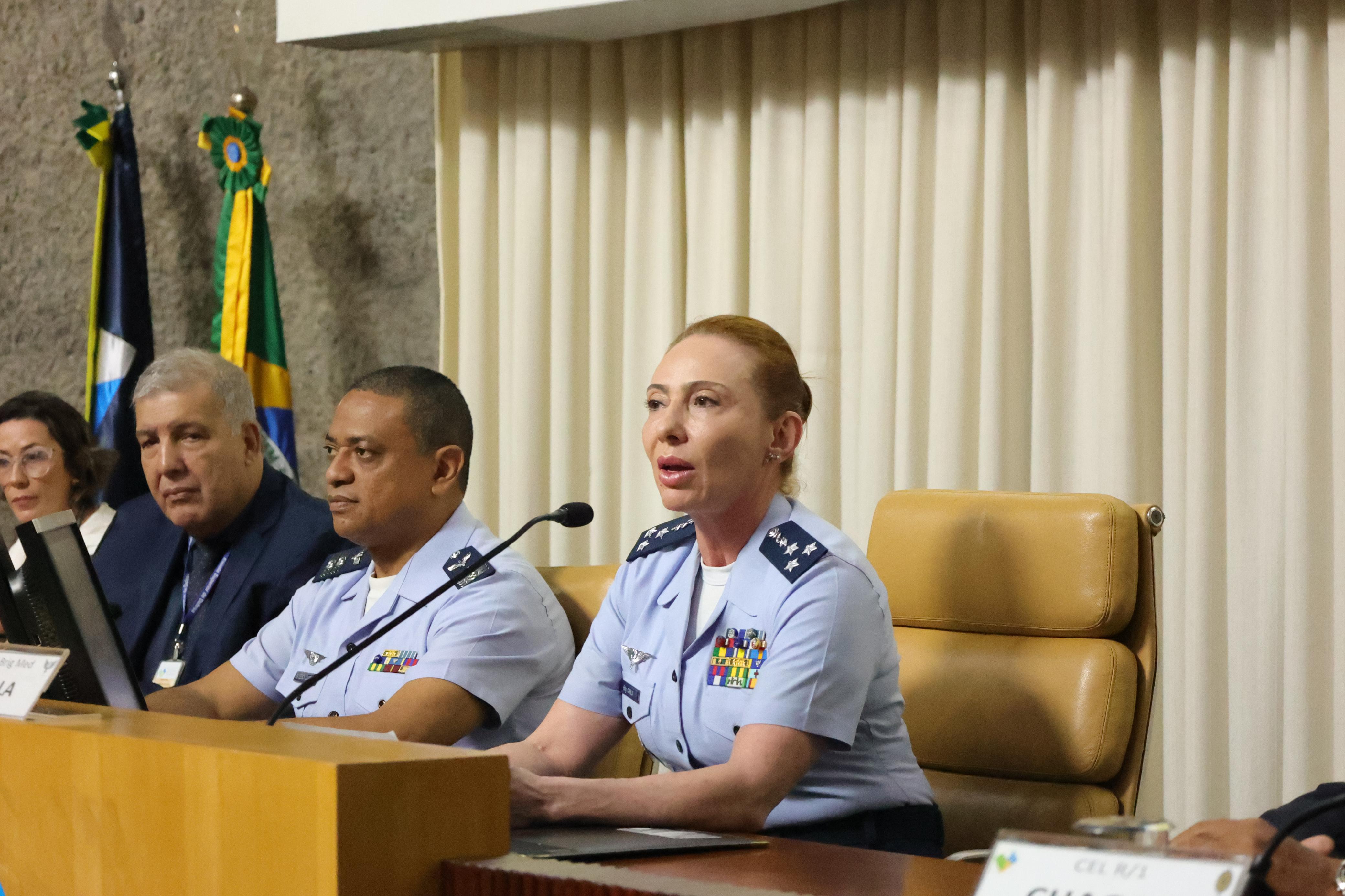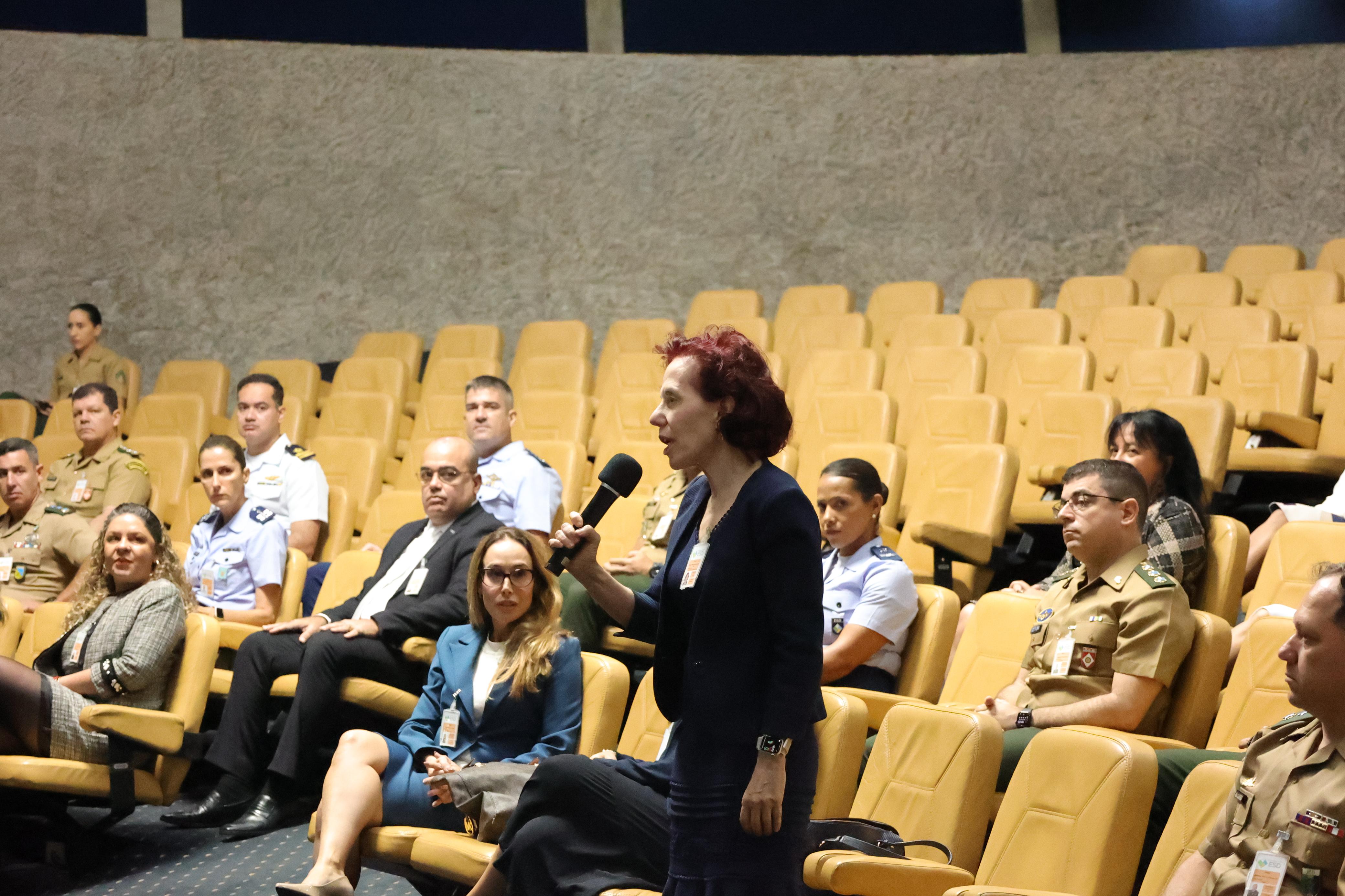 A Comandante e Reitora da ESD, Major-Brigadeiro Médica Carla Lyrio Martins, presidiu a cerimônia. “A estrutura da ESD foi pensada para favorecer o diálogo qualificado, a reflexão crítica e a construção coletiva do saber. Aproveitem esse espaço para questionar, contribuir e evoluir”, frisou a Oficial-General.