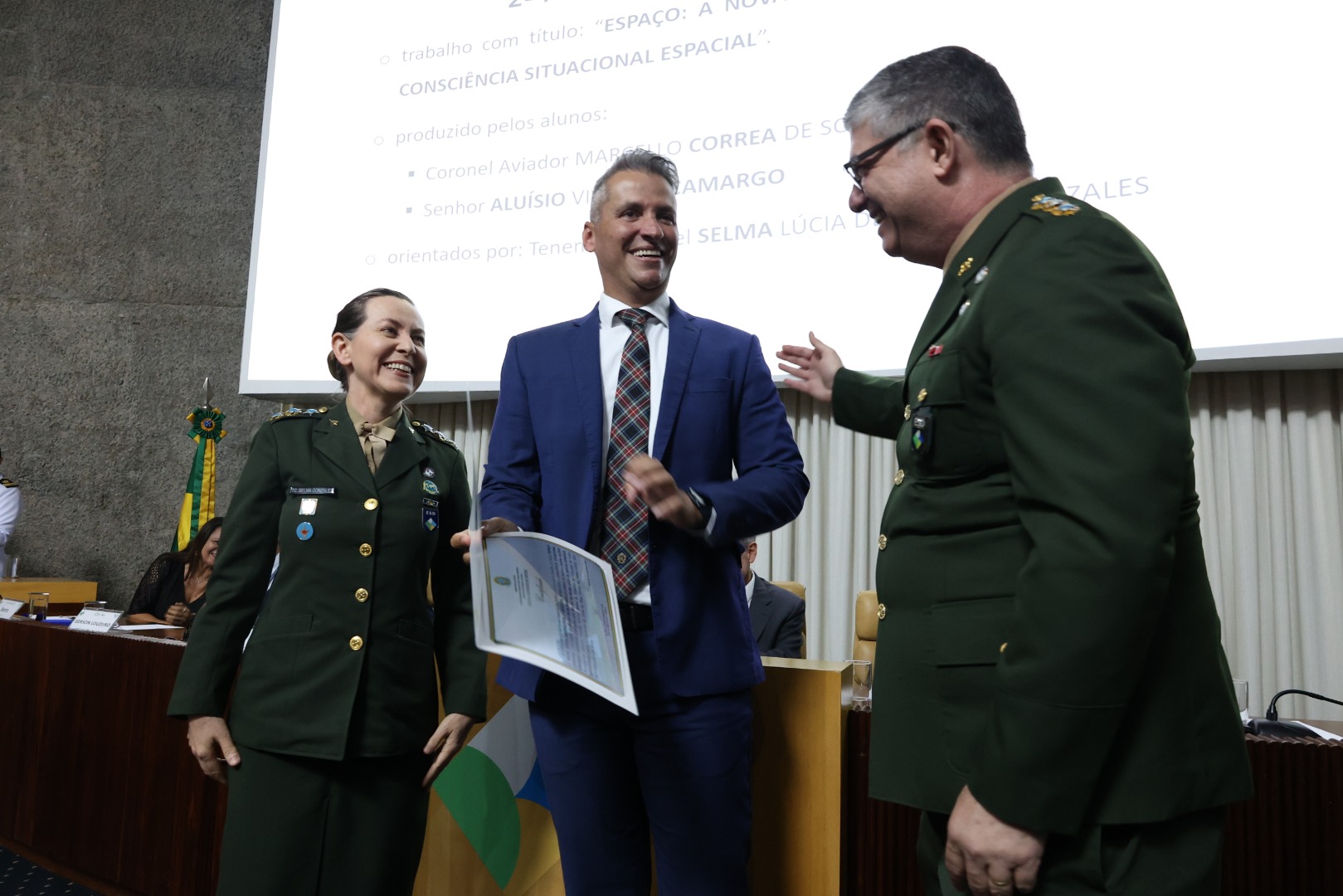 O Subcomandante da ESD, Coronel de Artilharia Tarcilo de Arruda Proença, fez a leitura das palavras do Comandante e Reitor da Escola Superior de Defesa, Major-Brigadeiro do Ar Valdir Eduardo Tuckumantel Codinhoto, que ressaltou o esforço de toda a equipe da Escola e, também, de todos os instrutores externos. “Os laços de amizade e de confiança que se fizeram durante os dias que aqui passaram são um bem tão valioso, quanto os conhecimentos desenvolvidos. Que a soma de tudo isso possa se reverter em ferramenta essencial para o exercício pleno de suas funções”, acrescentou.