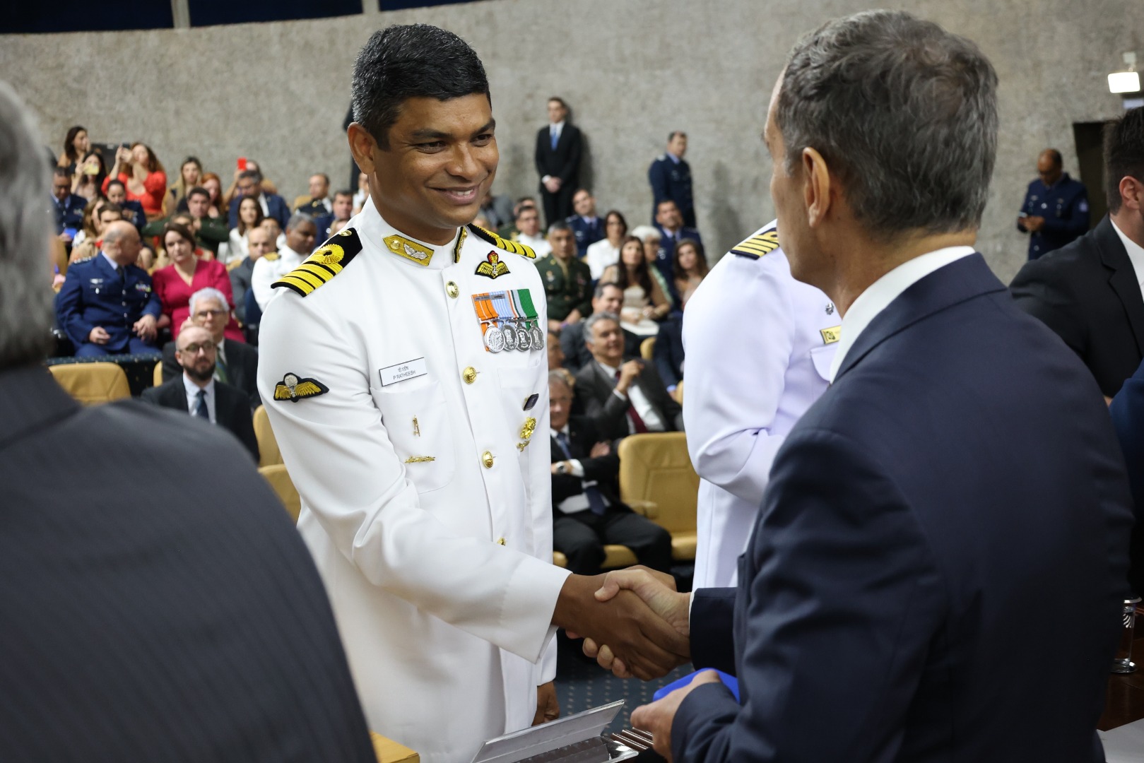 A solenidade, que ocorreu no Auditório Professor Gustavo Heck, da ESD, reuniu cerca de 300 pessoas. Estiveram presentes no evento o Embaixador George Torquato Firmeza, Diplomata de Ligação; o Subsecretário de Economia e Finanças do Exército, General de Divisão Intendente João Alberto Redondo Santana; o Subchefe de Orçamento e Plano Diretor do Estado-Maior da Armada, Contra-Almirante Jorge José de Moraes Rulff; o Chefe do Centro de Coordenação de Operações Cibernéticas do Comando de Defesa Cibernética, Contra-Almirante Francisco André Barros Conde; o Diretor do Departamento de Ciência, Tecnologia e Inovação, Brigadeiro do Ar Antonio Ferreira de Lima Júnior, e o Chefe do Departamento Acadêmico e Vice-Reitor, General de Brigada R1 Carlos Henrique Teche.