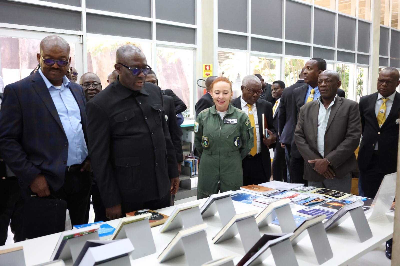 A Escola Superior de Defesa (ESD) recebeu, na manhã desta quarta-feira (14/08), uma comitiva composta por 23 militares e civis da Escola de Altos Estudos de Gana. O grupo foi recepcionado pela Comandante e Reitora da ESD, Major-Brigadeiro Médica Carla Lyrio Martins. Na ocasião, foram tratados temas relativos aos cursos da ESD e as atividades desenvolvidas pela Escola.