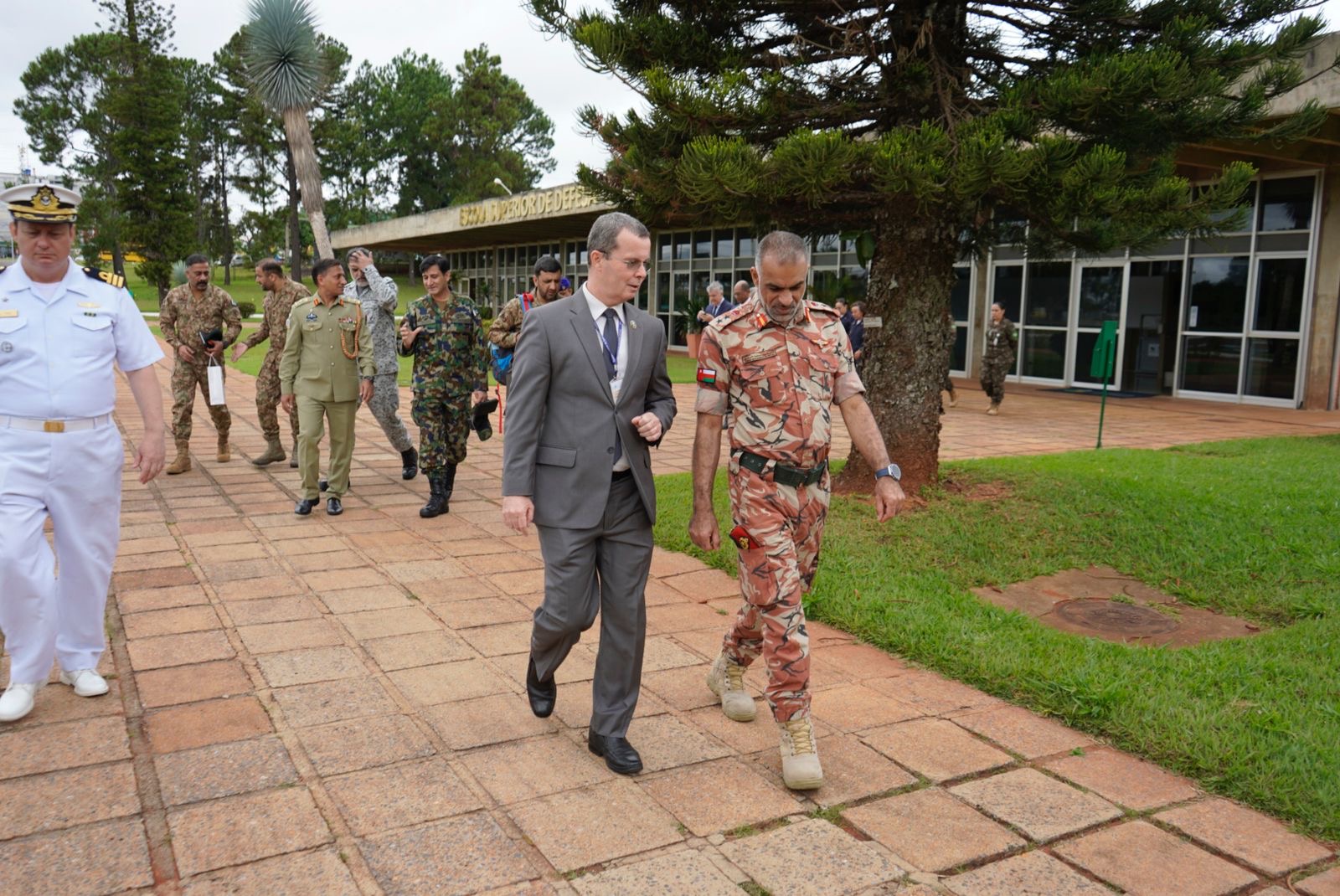A programação da visita contou com uma apresentação institucional conduzida pelo Capitão de Mar e Guerra Carlos Radicchi, da ESD, abordando a missão, a estrutura e os programas acadêmicos da Escola. Na sequência, os visitantes conheceram as instalações, incluindo a biblioteca. O Coronel R/1 Vladimir Schubert Neiva Ferreira comentou sobre a importância da visita. “As visitas de delegações internacionais contribuem para o fortalecimento dos laços entre o Brasil e nações amigas, além de proporcionarem oportunidades de intercâmbio de conhecimento e experiências, com vistas ao estabelecimento de futuras parcerias”.