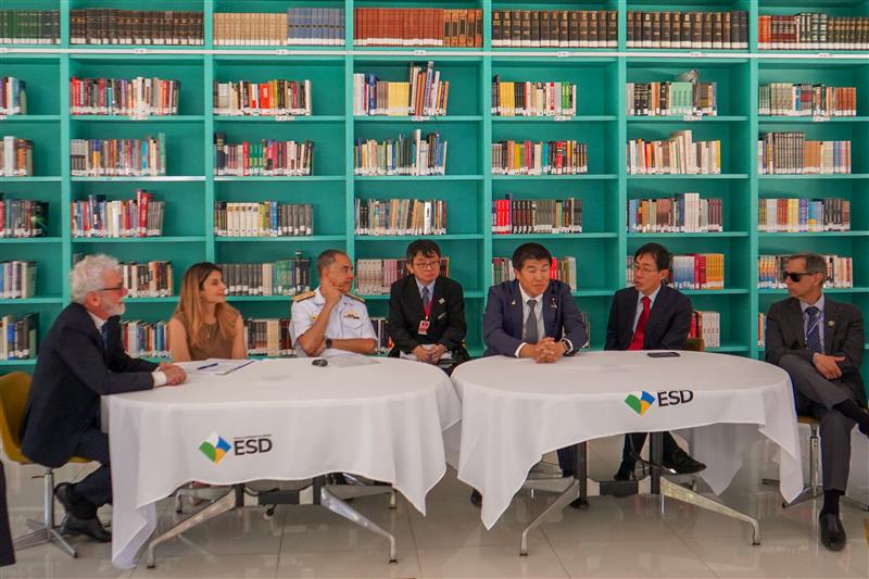 A comitiva foi recebida pelo Subcomandante da ESD, Contra-Almirante Leonardo Braga Martins, conheceu as instalações da Escola e assistiu a uma apresentação sobre os cursos desenvolvidos na ESD. Na ocasião, foram abordadas oportunidades de cooperação acadêmica e estratégica entre Brasil e Japão. A visita contou, também, com a presença da Conselheira Vanessa Sant'Anna Bonifácio Tavares (Secretaria da Ásia-Pacífico), representando o Ministério das Relações Exteriores (MRE).
