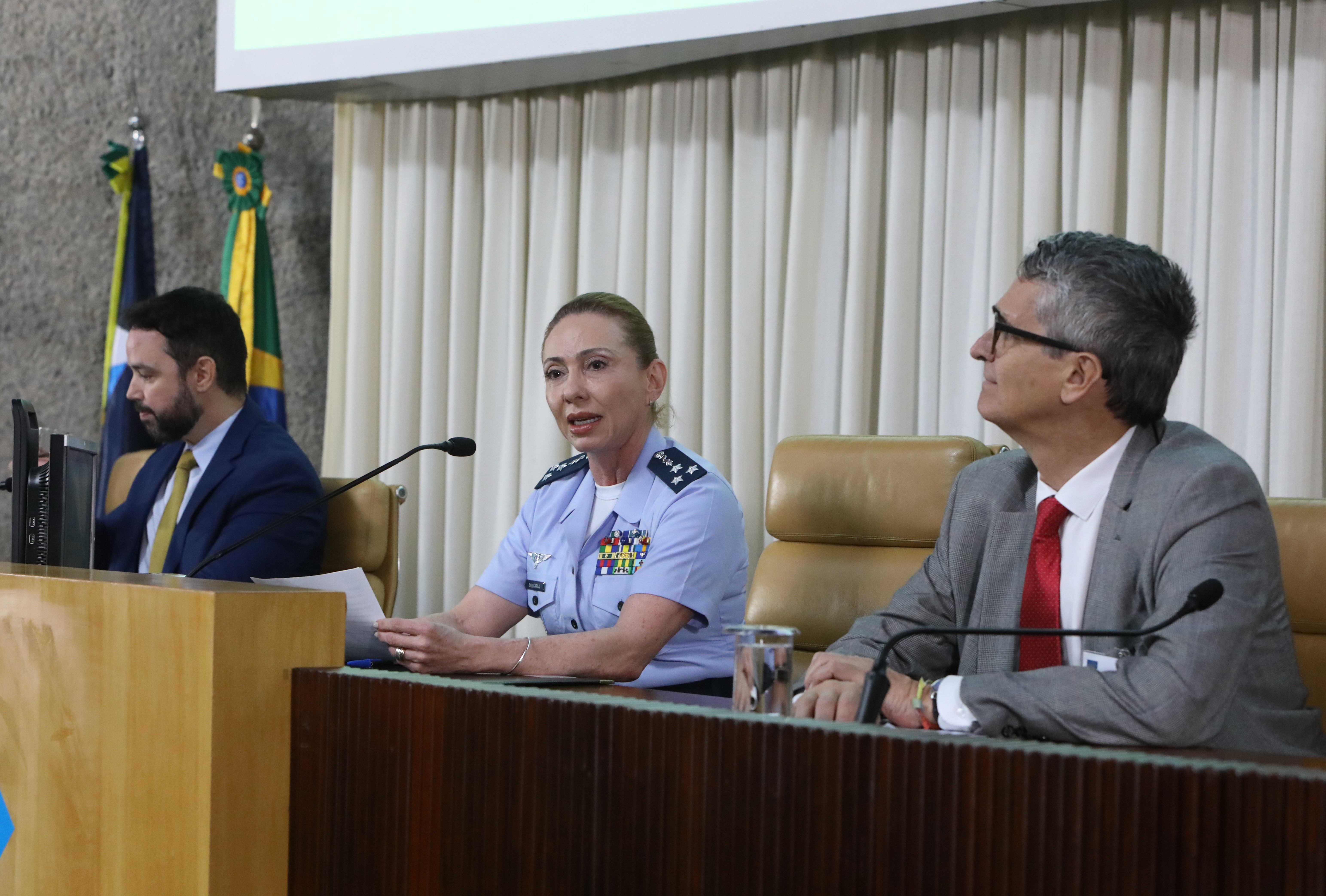 Já a Major-Brigadeiro Carla destacou que a ocasião representa a cooperação entre diversas instituições, que juntas buscam fortalecer o debate qualificado a respeito de assuntos de interesse coletivo. “Em tempos de complexidades crescentes e de transformações globais aceleradas, o foresight – ou planejamento de cenários, permite compreender as forças geopolíticas em jogo, antecipar tendências, fortalecer a resiliência de instituições e países, ampliar a capacidade de antecipação e moldar planejamentos capazes de resistir a múltiplos futuros possíveis”, frisou a Oficial-General.
