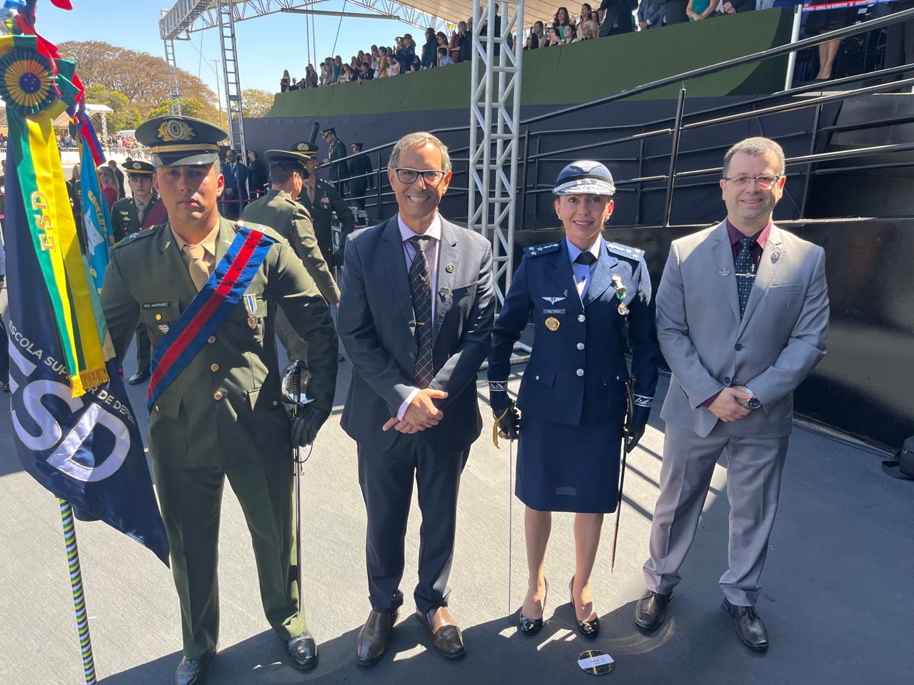 O Estandarte da Escola Superior de Defesa (ESD) foi condecorado com a Medalha do Pacificador e a Comandante e Reitora da ESD, Major-Brigadeiro Médica Carla Lyrio Martins, recebeu a Medalha do Exército Brasileiro. A solenidade de entrega das honrarias ocorreu nesta quinta-feira (22/08), no Quartel-General do Exército (QGEx), em Brasília (DF).