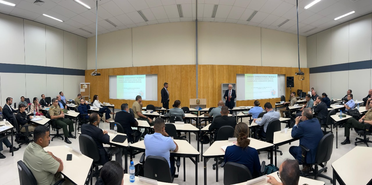 O Direito Internacional dos Conflitos Armados (DICA) também foi destaque da aula. Segundo ele, “O direito deve ser apto a ofertar a segurança jurídica a todo aquele que participa de uma operação militar, seja ela de guerra ou não guerra, seja no âmbito nacional ou internacional”, destacou.