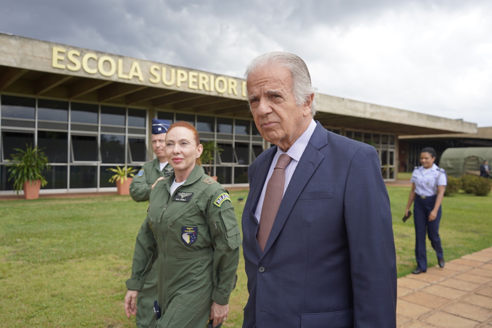 Também participaram da visita o Comandante do Exército, General de Exército Tomás Miguel Miné Ribeiro Paiva; o Comandante da Marinha, Almirante de Esquadra Marcos Sampaio Olsen; o Chefe do Estado-Maior Conjunto das Forças Armadas (EMCFA), Almirante de Esquadra Renato Rodrigues de Aguiar Freire; o Comandante de Operações Aeroespaciais, Tenente-Brigadeiro do Ar Raimundo Nogueira Lopes Neto, representando o Comandante da Aeronáutica; e a Comandante e Reitora da Escola Superior de Defesa (ESD), Major-Brigadeiro Médica Carla Lyrio Martins.