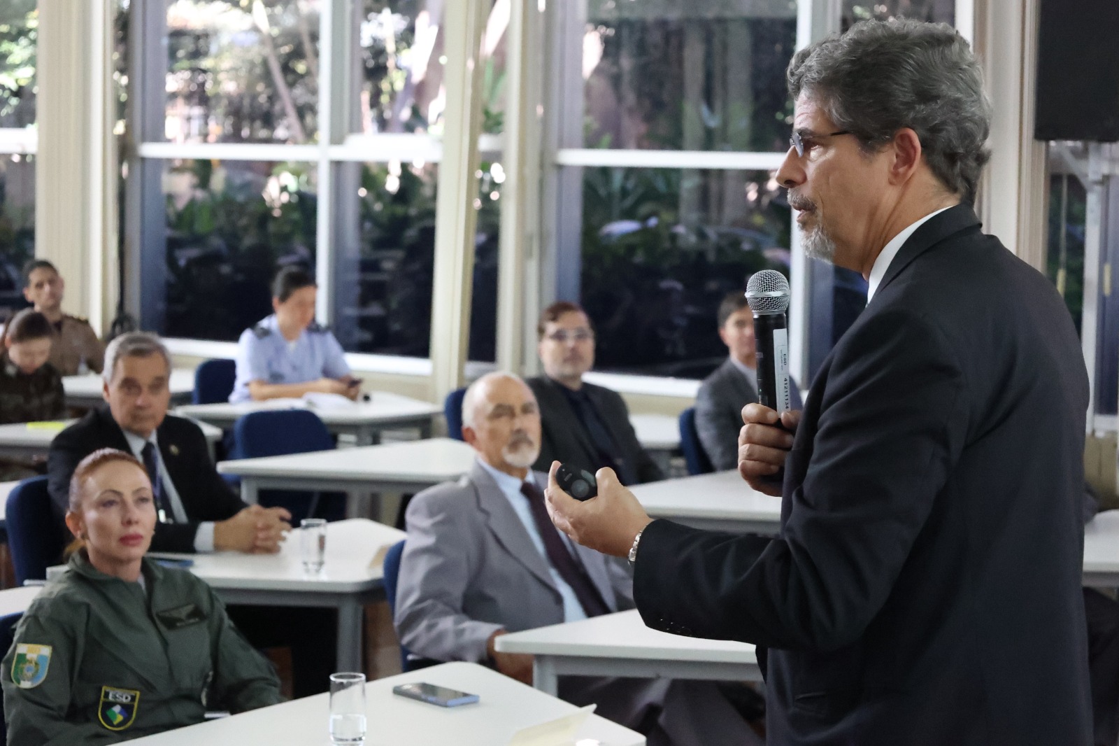 Integrando as atividades do CSIE, a palestra abordou questões como a importância e o impacto da Inteligência Econômica de Estado; o conceito de guerra de quinta geração; bem como as ameaças e os desafios atuais.
