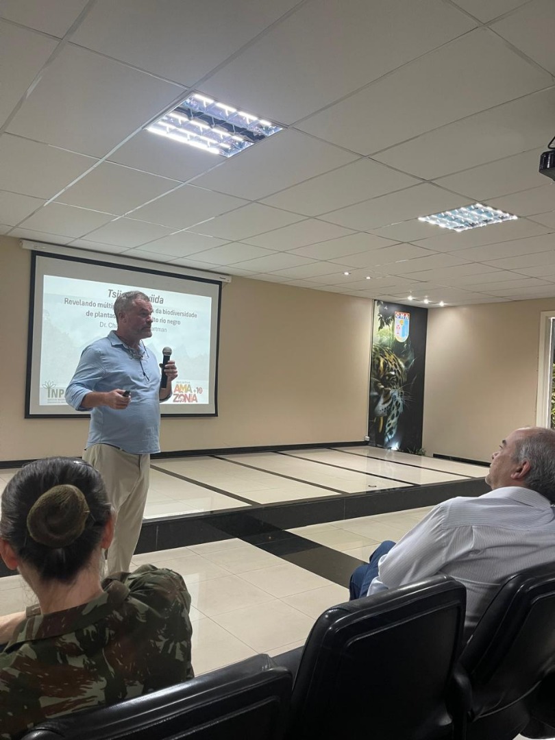 Entre os dias 22 e 25 de abril de 2025, três professores e pesquisadores da Escola Superior de Defesa (ESD) representaram a instituição no 1º Encontro do Projeto “TSIINO HIIWIIDA: Revelando múltiplas dimensões da biodiversidade de plantas e fungos do alto Rio Negro”, sediado pelo Comando Militar da Amazônia (CMA), em Manaus (AM). A iniciativa, aprovada em 2024 na Chamada Expedições Amazônia+10 do CNPq, é liderada pelo Instituto Nacional de Pesquisas da Amazônia (INPA) e reúne instituições de pesquisa de oito estados brasileiros e do Reino Unido.