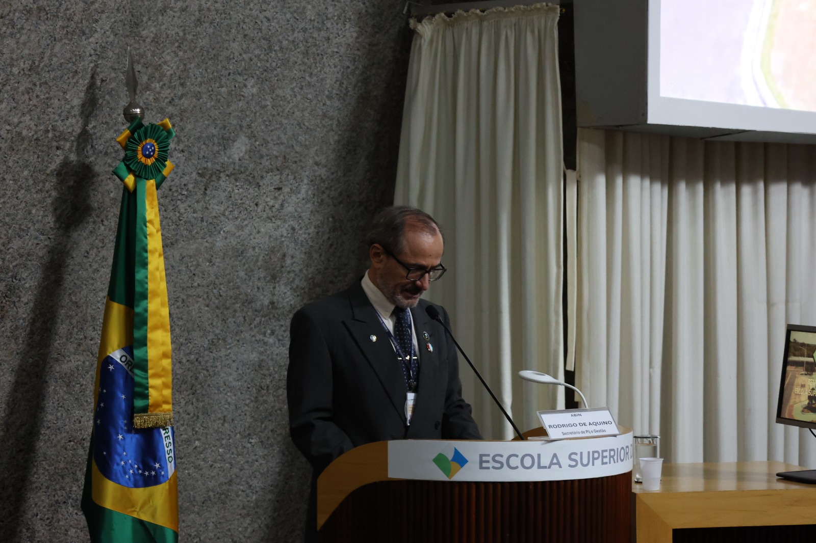Nesta terça-feira (19/03), o Secretário de Planejamento e Gestão da Agência Brasileira de Inteligência (ABIN), Rodrigo Aquino, ministrou a aula inaugural para os alunos do Curso Superior de Inteligência Estratégica (CSIE), na Escola Superior de Defesa (ESD), em Brasília (DF).