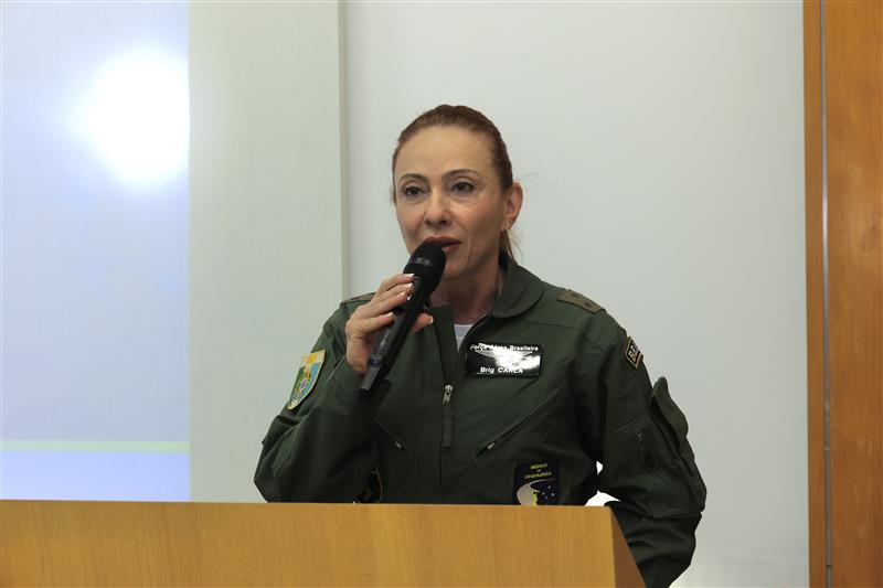 A Comandante da ESD, Major-Brigadeiro Carla Lyrio Martins, proferiu a mensagem de boas-vindas. “Este encontro representa uma oportunidade valiosa para refletir sobre o conceito de resiliência aplicado ao campo da segurança e da defesa, com ênfase na integração de esforços, na identificação de vulnerabilidades e na construção de capacidades voltadas à superação de crises e ameaças contemporâneas”, frisou.