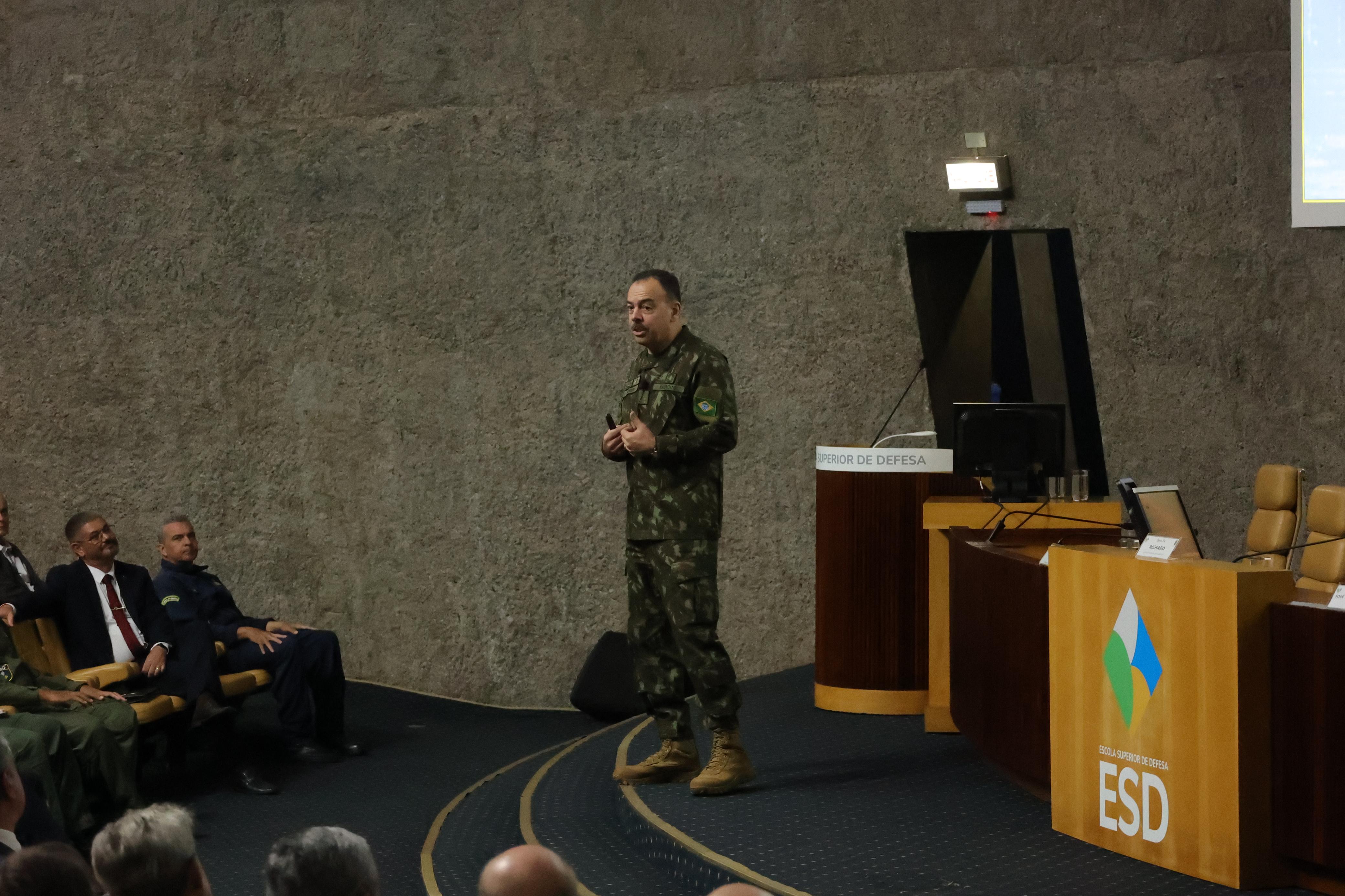 O Simpósio teve como objetivo compreender os desafios do atual cenário midiático, com ênfase no ambiente digital, e discutir estratégias para a abordagem eficaz de temas ligados à Defesa. Estiveram presente o General de Exército Richard Fernandez Nunes, Chefe do Estado-Maior do Exército; o General de Exército Francisco Humberto Montenegro Júnior, Chefe de Educação e Cultura do Estado-Maior Conjunto das Forças Armadas; o General de Divisão Márcio Cordeiro Freire, 6º Subchefe do Estado-Maior do Exército; a Major-Brigadeiro Médica Carla Lyrio Martins, Comandante e Reitora da ESD; e o Brigadeiro do Ar Daniel Cavalcanti de Mendonça, Chefe do Centro de Comunicação Social da Aeronáutica, além de outras . O público incluiu, ainda, alunos do Curso de Altos Estudos em Defesa (CAED), integrantes do Corpo Permanente da instituição, convidados dos Centros de Comunicação Social das Forças Armadas e do Ministério da Defesa, além de estudantes de Comunicação Social de faculdades de Brasília. Um dos painelistas do Simpósio foi o General Richard, que também é especialista em Comunicação Social, tendo sido Chefe do Centro de Comunicação Social do Exército (CCOMSEx), que abordou sobre “Comunicação Estratégica no Exército Brasileiro”.Segundo o General Richard, foi uma grande satisfação participar desse evento promovido pela Escola Superior de Defesa. “A comunicação estratégica é um assunto fundamental para todos que têm interesse na defesa da nossa soberania. Precisamos desenvolver iniciativas nesse sentido. Nada como um evento dessa natureza, que podemos ouvir especialistas de diversas áreas”, frisou.
