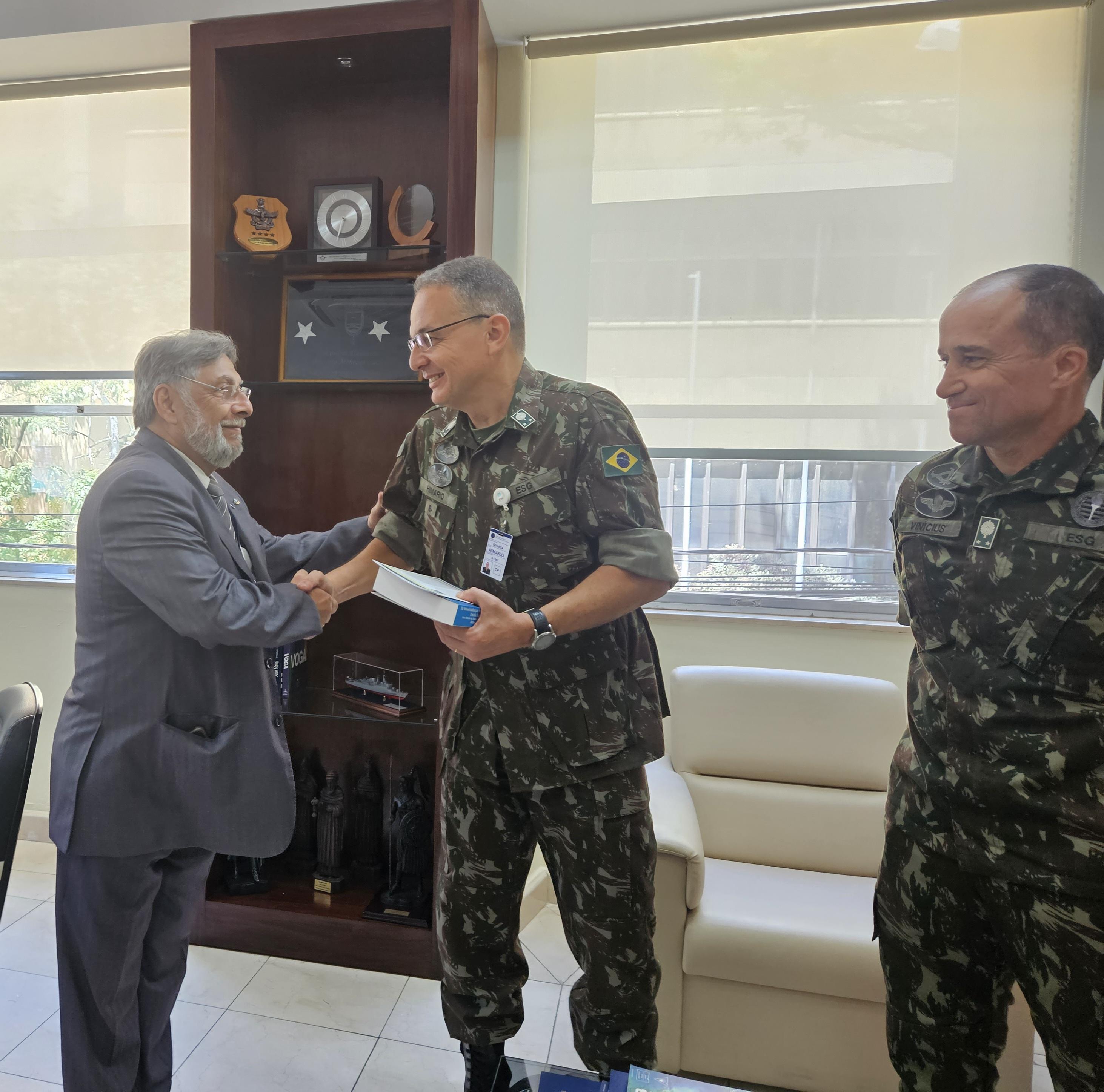 O Comandante da Escola Superior de Guerra (ESG), Vice-Almirante Marcelo Menezes Cardoso, recebeu em seu gabinete, nesta manhã (21), os integrantes da nova Diretoria Executiva para o biênio 2024/2025 da Associação dos Diplomados da Escola Superior de Guerra (ADESG).