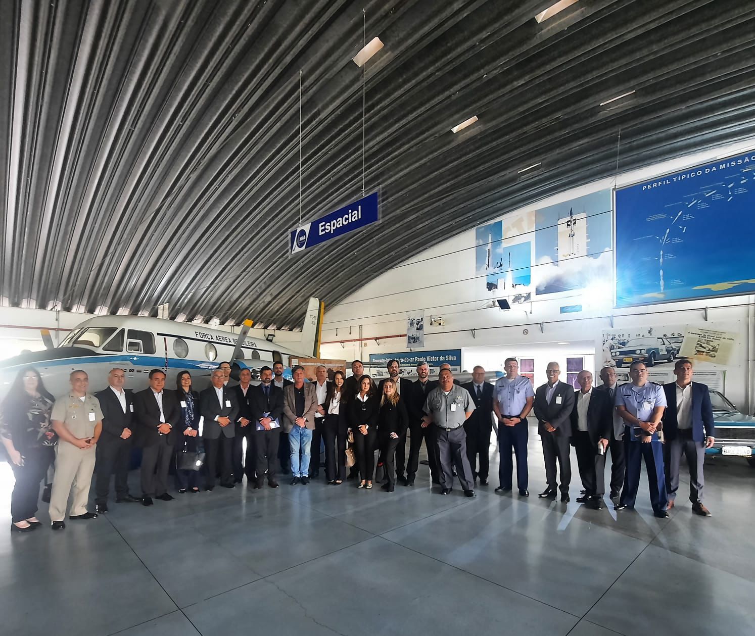Durante o período, os participantes do curso tiveram a oportunidade de visitar o Departamento de Ciência e Tecnologia Aeroespacial (DCTA), o Instituto Nacional de Pesquisas Espaciais (INPE), o Instituto de Estudos Avançados (IEAv), as Indústrias Nucleares do Brasil (INB), a Nuclebrás Equipamentos Pesados (NUCLEP), o Programa de Desenvolvimento de Submarinos (PROSUB) e o setor de Automação e Simulação da FIRJAN. A visita ao DCTA, em São José dos Campos-SP, permitiu aos participantes conhecerem de perto os avanços nas áreas de pesquisa aeroespacial e defesa. O DCTA abriga diversas unidades de pesquisa e desenvolvimento, responsáveis por projetos estratégicos para a segurança nacional. No INPE, o foco foi na importância das tecnologias espaciais e suas aplicações civis e militares. Os participantes puderam compreender melhor como o monitoramento por satélites contribui para a defesa e a soberania nacional, além de impulsionar setores como agricultura e gestão de desastres naturais. Ainda em São José dos Campos, o IEAv, conhecido por suas pesquisas em física aplicada e engenharia, apresentou seus projetos inovadores em tecnologias de defesa, incluindo sistemas de proteção e novas metodologias de detecção.