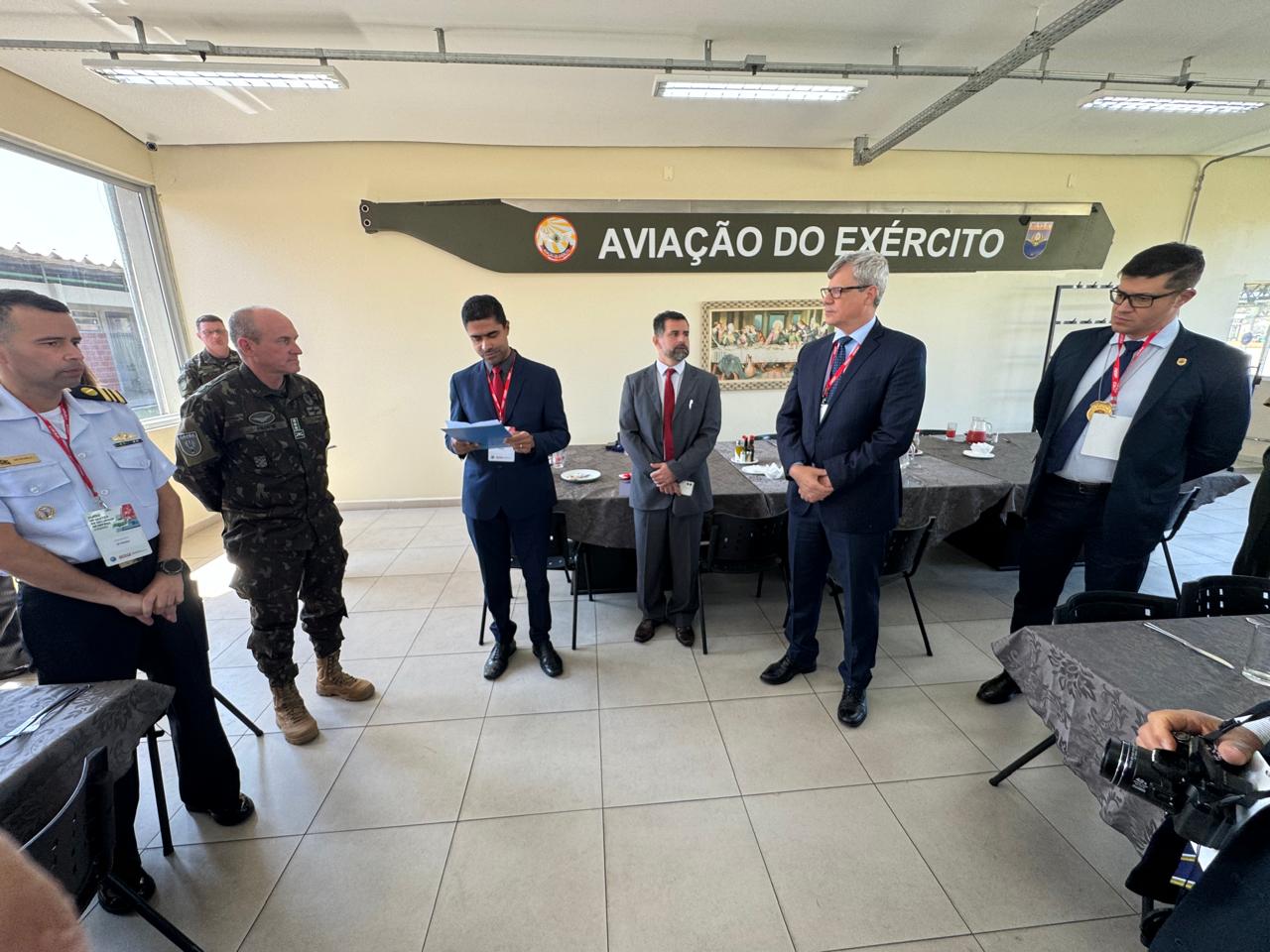No Comando de Aviação do Exército, em Taubaté, os estagiários observaram as capacidades do segmento aéreo do Exército Brasileiro, compreendendo a integração entre tecnologia e operações militares. A visita ofereceu uma visão clara sobre a importância da aviação militar em operações de defesa e logística, além de mostrar como o Exército Brasileiro está se adaptando às novas tecnologias e desafios no cenário contemporâneo.