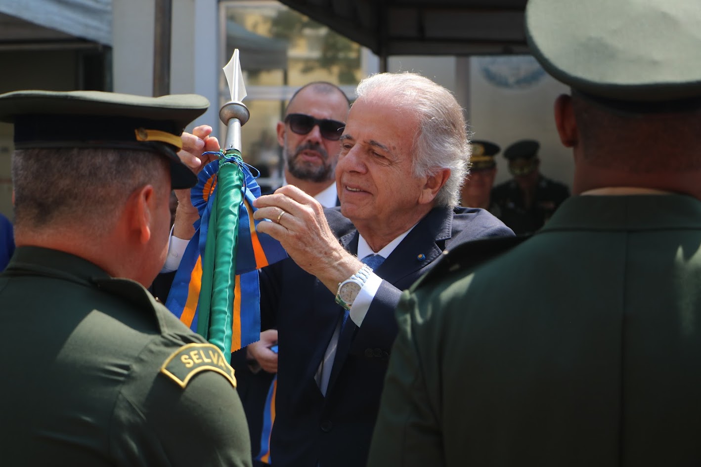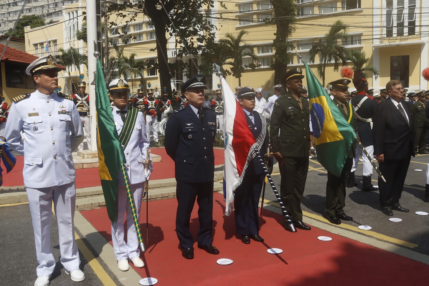 A Escola Superior de Guerra (ESG) realizou nesta manhã (21) uma solenidade militar alusiva aos 75 anos de existência completados ontem, 20 de agosto. Presidida pelo ministro de Estado da Defesa, José Mucio Monteiro Filho, a cerimônia contou com a participação de autoridades civis e militares, nacionais e estrangeiras, membros do corpo permanente e do corpo docente da ESG, estagiários do Curso de Altos Estudos de Política e Estratégia e alunos da Escola Municipal Estácio de Sá, situada na Fortaleza de São João, na Urca, onde está sediada a ESG.