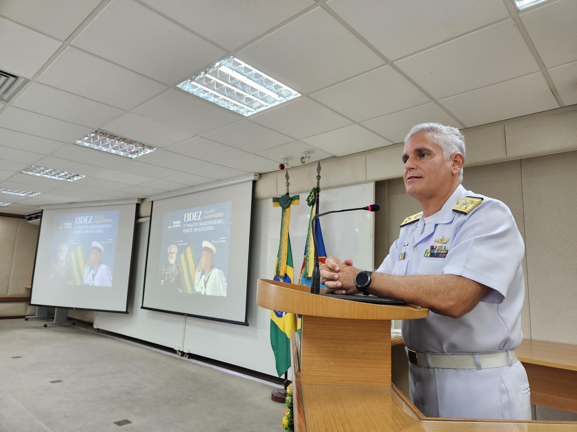 Após a exibição do vídeo institucional da MB alusivo à data comemorativa (Assista AQUI), o Comandante da ESG, Vice-Almirante Marcelo Menezes Cardoso, destacou o orgulho de celebrar a data e observar o contínuo progresso da Força Naval ao longo das últimas décadas. “Aqueles que vivenciaram a Marinha dos anos 80, 90, percebem o quanto nossa Força evoluiu desde então. Dificuldades sempre vão existir, o que fará a diferença somos nós, que, com todos os obstáculos, conseguimos manter uma Marinha forte, em constante evolução. Emociono-me, pois é gratificante embarcarmos em um navio e ver o sacrifício de cada um para manter aquela embarcação, o nosso material e cultuar as nossas tradições. É isso que faz toda a diferença. Nosso pessoal é, sem dúvida, nosso maior patrimônio”, disse ele, citando exemplos de heróis do passado, como o Almirante Tamandaré, e parabenizando os integrantes da MB pela data.