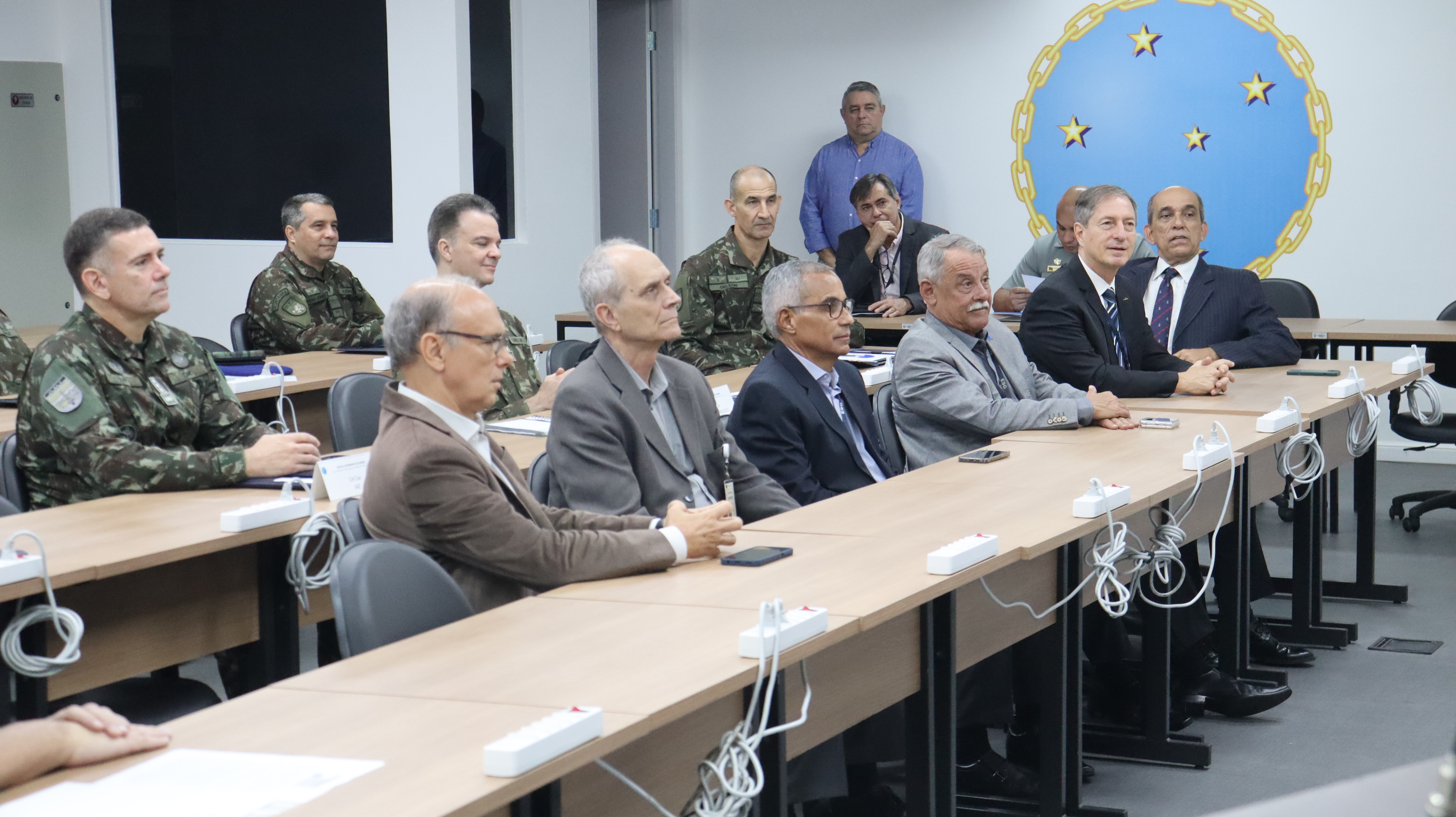O Almirante Cardoso também destacou a importância do trabalho conjunto das três Forças, e compartilhou um pouco de sua experiência e lições aprendidas nos mais variados cargos que exerceu em sua trajetória na Marinha do Brasil.