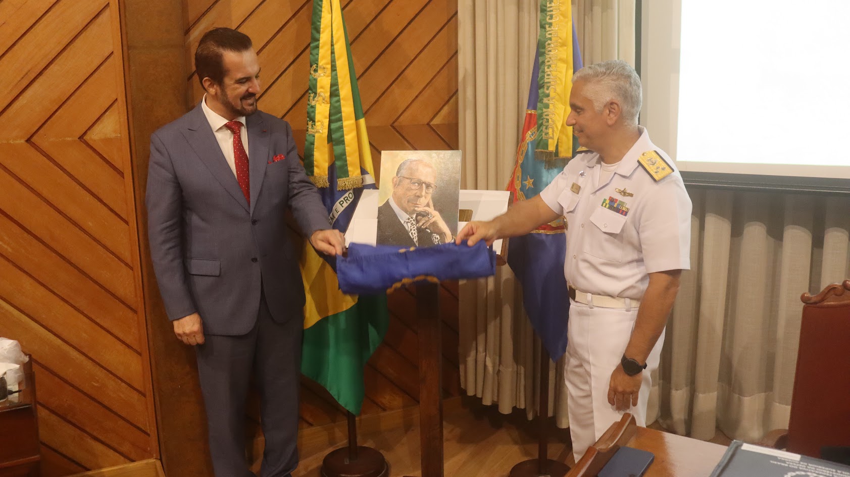 Durante a solenidade de diplomação, foi inaugurado o quadro com o retrato do economista Roberto Campos, escolhido patrono da turma 2024. Em nome da turma, o estagiário do CAEPE e cônsul honorário da Finlândia no Rio de Janeiro, Sérgio Geraldo Rocha Chamone, proferiu uma homenagem ao patrono escolhido. “Seu legado intelectual e seu exemplo de pensamento estratégico foram fundamentais para a construção de um Brasil moderno e competitivo. Sob a égide de seu nome, afirmamos nosso compromisso com a excelência do serviço à nação e com a busca de soluções estratégicas que promovam o progresso econômico político e social do país. Que seu legado sirva de farol em nossa jornada e ilumine o caminho para o Brasil do futuro”, ressaltou.