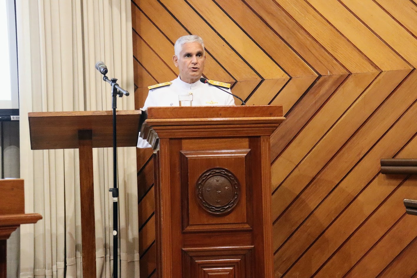 O Contra-Almirante Marcelo Costa Reis, estagiário militar mais antigo, proferiu palavras sobre a trajetória compartilhada pela turma. “Ao longo desses 10 meses de uma desafiadora singradura, sobrepujando mares bravios e passando por densos nevoeiros, nossa turma se comportou como uma verdadeira e aguerrida tripulação desse navio. Ao se debruçar sobre uma gama de temas relacionados ao Poder Nacional em seus trabalhos em grupos, discussões em auditórios e salas de aula e, sobretudo, nas visitas e viagens de estudos, contribuiu para a visão de futuro da ESG: ser reconhecida como uma instituição de excelência nacional e de referência internacional. Nossa turma reflete a diversidade e a riqueza de experiências do nosso país. Essa multiplicidade de vivências e perspectivas enriqueceu nossos debates e ampliou nossa compreensão sobre os desafios presentes nos cenários nacional e internacional”.