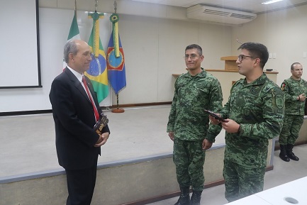 O capitão Eduardo Rólon, integrante da turma de mestrado da Escola Superior de Guerra do México, agradeceu, em nome da comitiva, a oportunidade de aprendizado durante a visita. “Ficou claro que compartilhamos valores muito importantes, sobretudo um princípio que está estampado na bandeira do Brasil: o progresso. Saímos daqui, portanto, com o desejo de dar continuidade ao trabalho que vêm sendo desenvolvido em nossa escola e também de projetar nossas Forças Armadas e nosso país em um nível maior”.