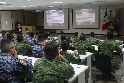 A Escola Superior de Guerra (ESG) recebeu a visita de uma comitiva da Escola Superior de Guerra do México na tarde dessa segunda-feira, 5 de junho. O comandante da ESG, Vice-Almirante Gilberto Santos Kerr, recepcionou o adido militar do México no Brasil, General de Brigada Alejandro Alcântara Avila; o diretor do instituto de altos estudos do México, Coronel José Luis García Rosas, e cerca de 70 discentes e oficiais instrutores do Curso de Estado-Maior, entre eles integrantes da primeira turma de mestrado da instituição.