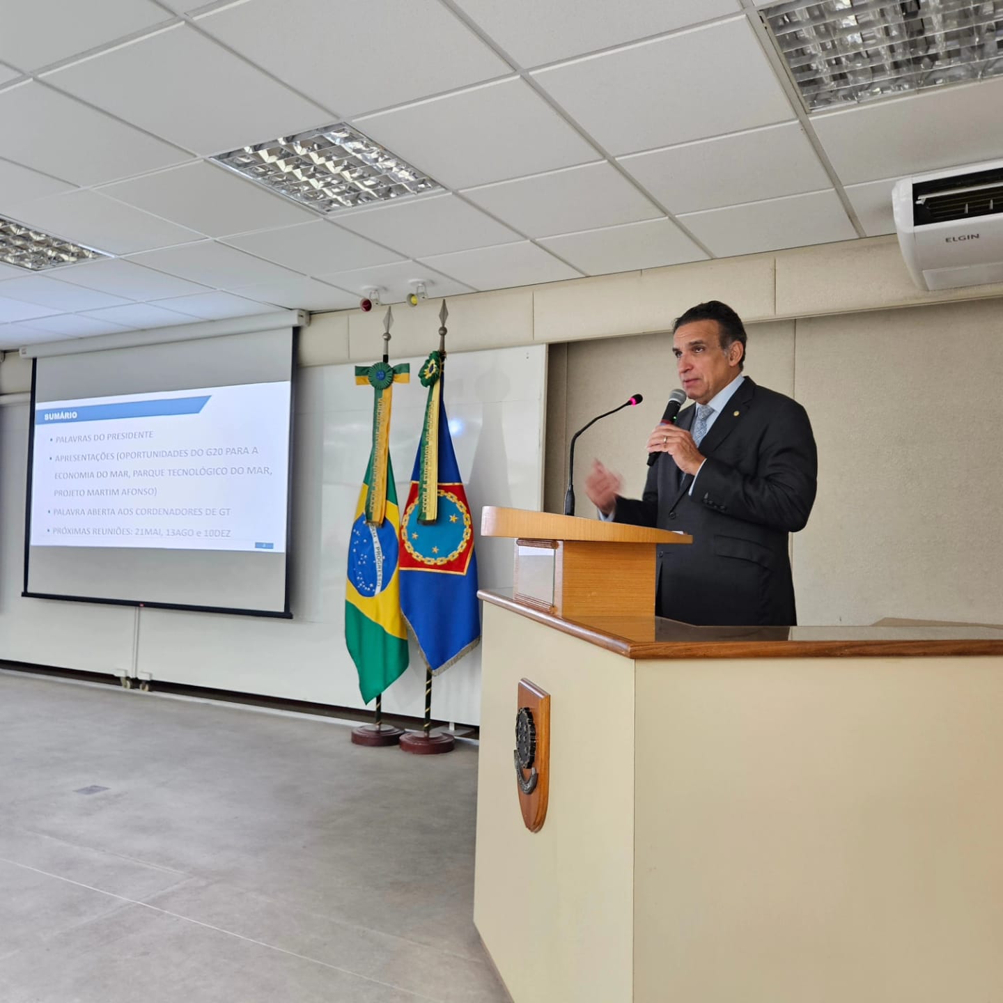 O deputado federal Hugo Leal, presidente da Comissão, ressaltou, em seu discurso de abertura, a relevância dos encontros e das contribuições dos presentes, em especial dos grupos de trabalho, para a implementação de políticas públicas que fomentem a economia do mar no Estado do Rio de Janeiro. “As contribuições têm sido muito pertinentes e colaborado para a execução das políticas públicas. Agradeço, em especial, à Escola Superior de Guerra, na figura do seu comandante, Vice-Almirante Marcelo Menezes Cardoso, por nos receber e proporcionar a oportunidade de realizar as reuniões nesta Escola”.