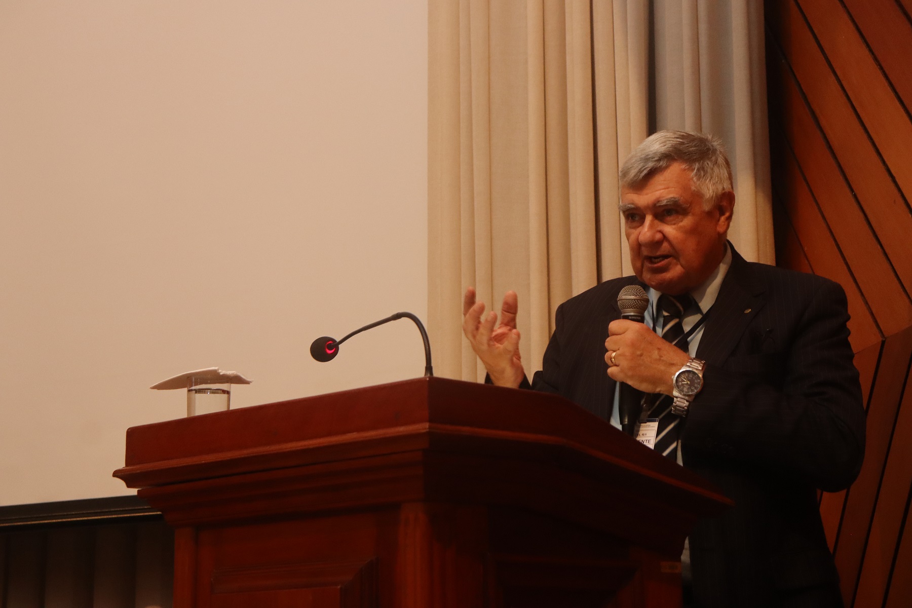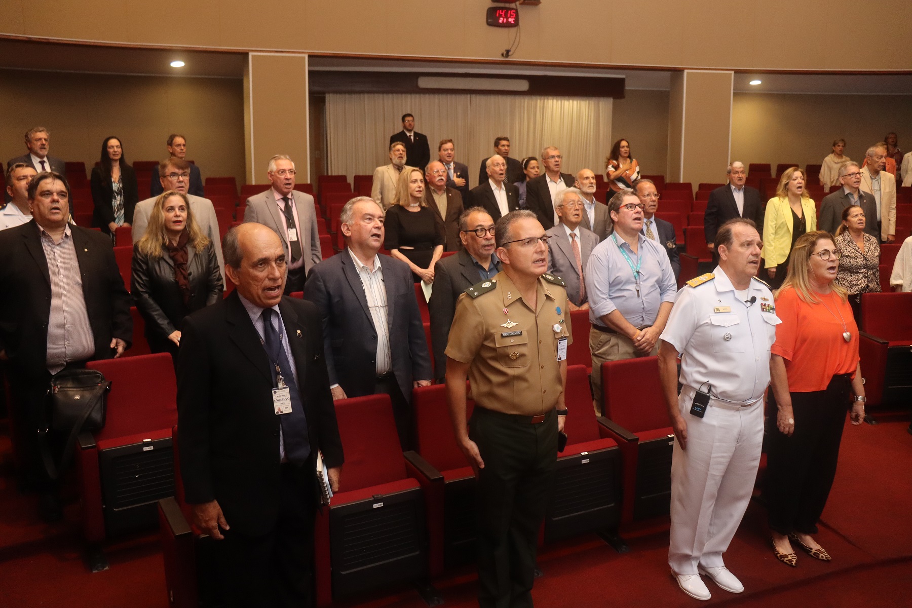O Presidente da ADESG nacional, Coronel Intendente R1 da Aeronáutica Antonio Celente Videira, realizou o discurso de abertura do evento. “A ESG é um templo sagrado e nossos estagiários se sentem bem quando retornam a nossa Escola. Portanto, agradeço, em nome de todos os presentes, o apoio que nos está sendo prestado”.