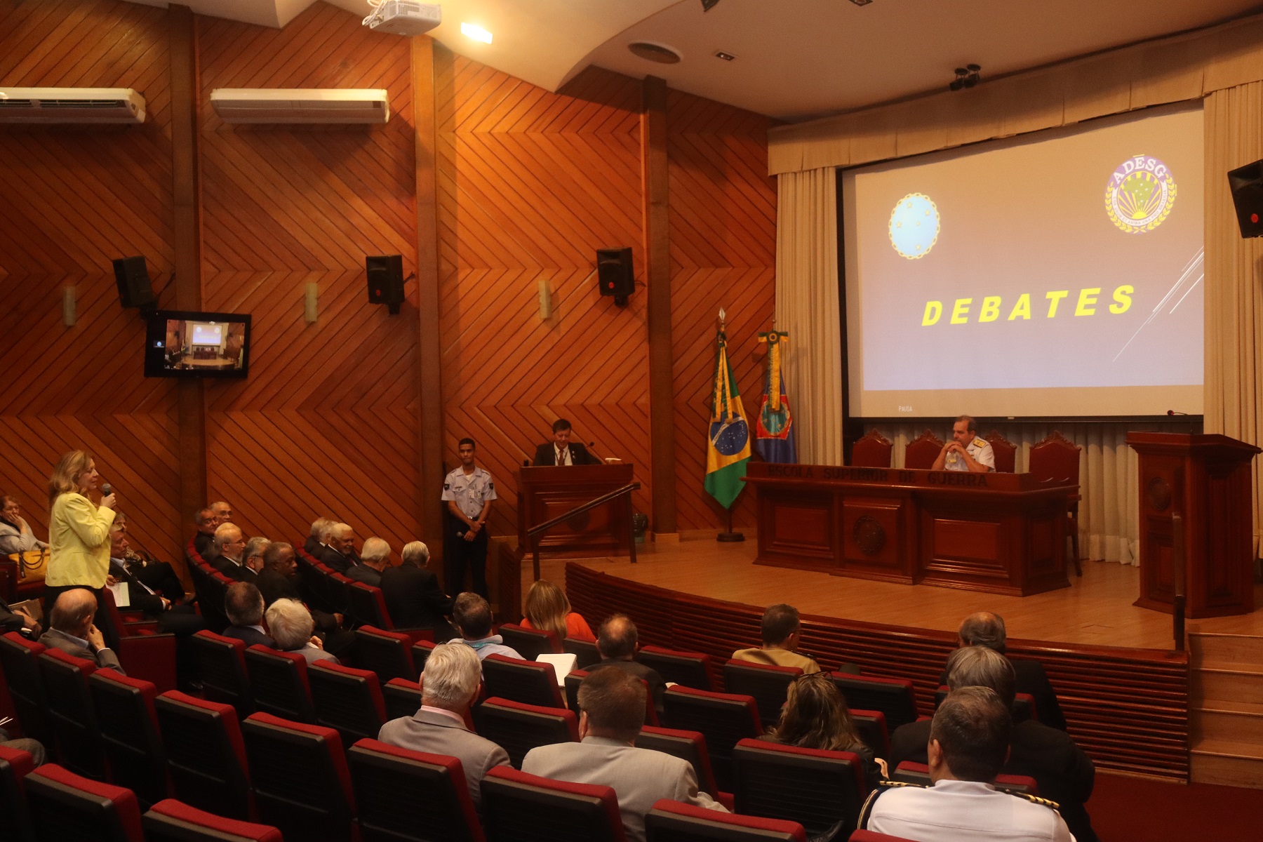 Prestigiaram a palestra o Subcomandante da ESG, General de Brigada Himario Brandão Trinas; o desembargador Antonio Carlos Esteves Torres, membro do Conselho Superior da ADESG; o ex-delegado da ADESG-Rio Contra-Almirante (FN) Edésio Campanille Neves Araripe; o diretor do Centro de Estudos Estratégicos Marechal Cordeiro de Farias, Contra-Almirante Guilherme Mattos Abreu; o assessor de Relações Institucionais da ESG, Contra-Almirante Gilberto Cezar Lourenço, e demais autoridades.