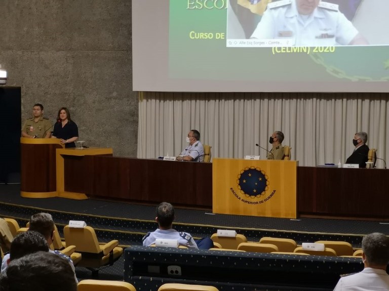 Em cerimônia realizada no dia 22 de outubro, no campus Brasília da Escola Superior de Guerra (ESG), foram diplomados 35 concluintes do Curso de Extensão em Logística e Mobilização Nacional (CELMN). A solenidade, presidida pelo Comandante da ESG, Almirante de Esquadra Wladmilson Borges de Aguiar, acompanhado pelo Comandante do Campus Brasília, General de Divisão Carlos André Alcântara Leite, e pelo Coordenador do curso, Coronel Intendente R1 EB Antonio Celente Videira, foi restrita aos formandos e sem a participação de familiares e convidados, adaptado às medidas de enfrentamento à COVID-19 e seguindo as orientações do Ministério da Defesa.