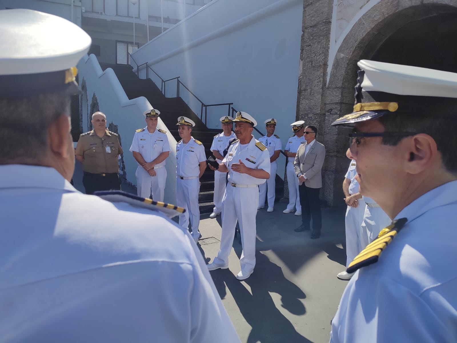 Os estagiários do Curso de Altos Estudos de Política e Estratégia (CAEPE) da Escola Superior de Guerra (ESG) visitaram, na última quarta-feira (12), a Escola Naval (EN). Recebidos pelo comandante da EN, Contra-Almirante Vagner Belarmino de Oliveira, os estagiários assistiram a uma palestra sobre a história da mais antiga instituição de ensino de nível superior do Brasil, criada em 1782, em Lisboa, sob a denominação de “Academia Real de Guardas-Marinha”, e trazida para o Brasil em 1808, junto com a Família Real, instalando-se inicialmente no Mosteiro de São Bento, onde permaneceu até 1832, e fixando-se, em 1938, na Ilha de Villegagnon.
