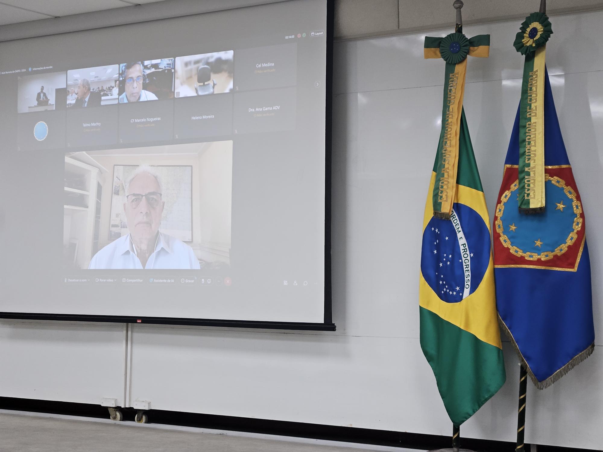 Também participaram da palestra o subcomandante da Escola, oficiais-generais e membros do corpo docente e do corpo permanente.