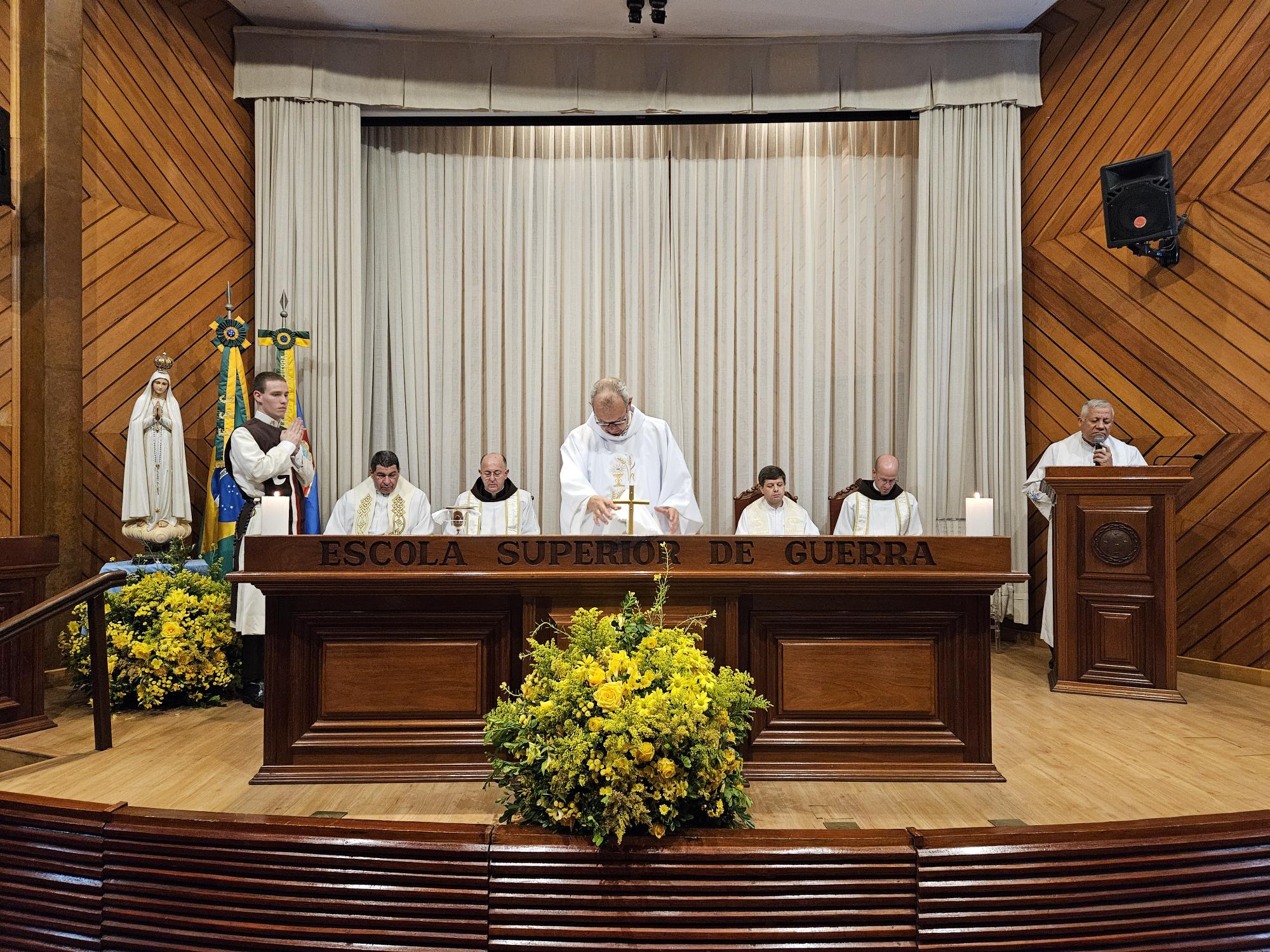 Atividades religiosas - A manhã de segunda-feira (19) foi marcada pela celebração de atividades religiosas, com a participação de corais de músicos e capelães das três Forças atuando no culto evangélico e na missa católica. As atividades, coordenadas pela Assistência Militar da Força Aérea Brasileira, com o apoio do capelão da ESG, foram desenvolvidas nos auditórios “C” e “B”, respectivamente. A celebração católica contou com a imagem de Nossa Senhora de Fátima, trazida do santuário situado no Recreio dos Bandeirantes.